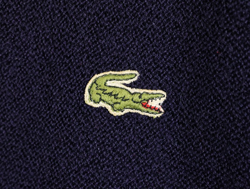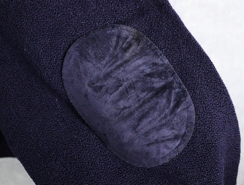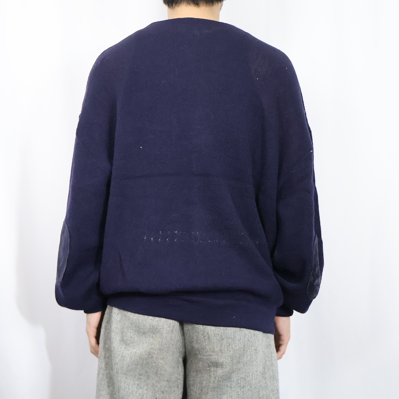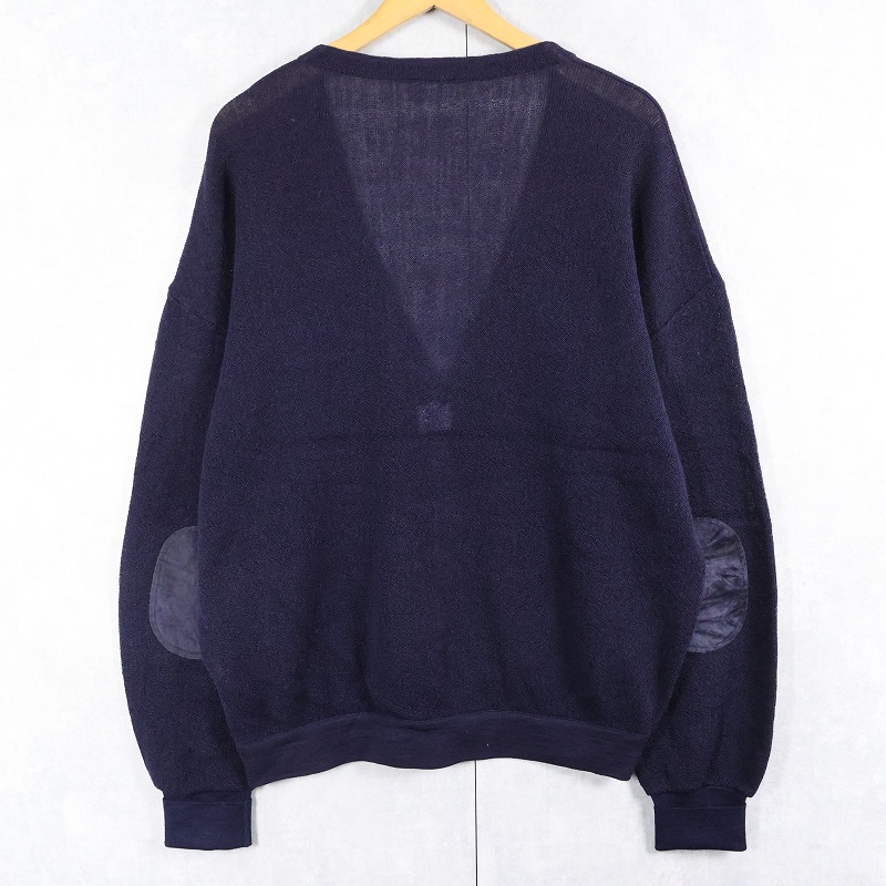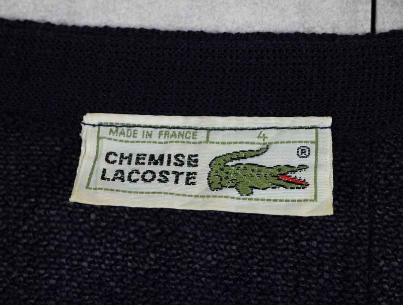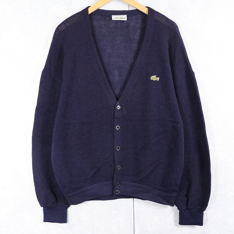 70〜80's CHEMISE LACOSTE FRANCE製 エルボーパッチ付き ウールニットカーディガン NAVY SIZE4 [164737]