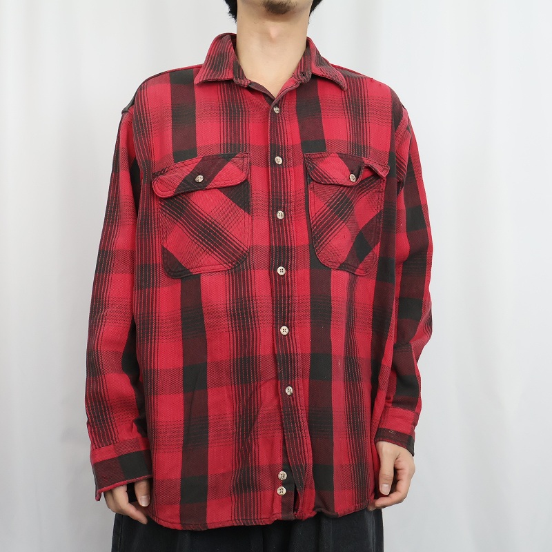 90's FIELD MASTER USA製 チェック柄 ヘビーネルシャツ L [164799]