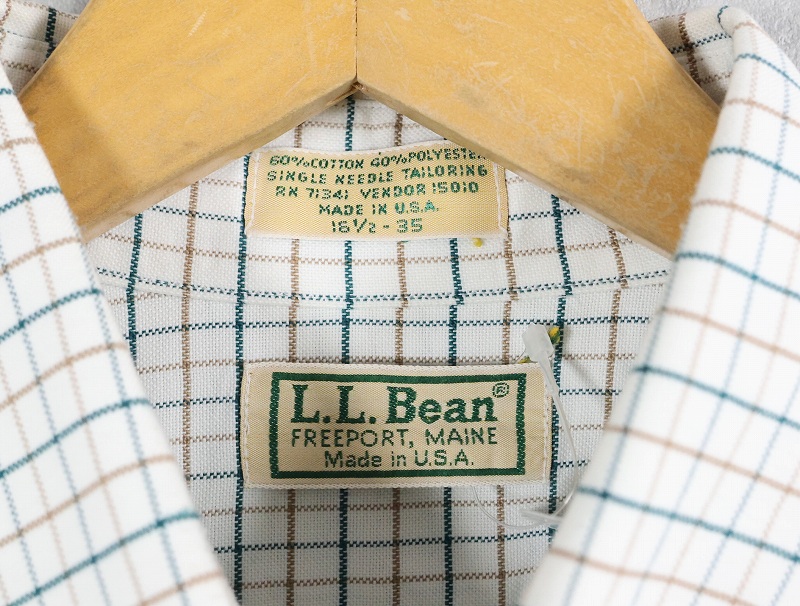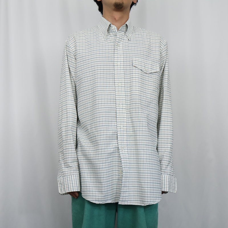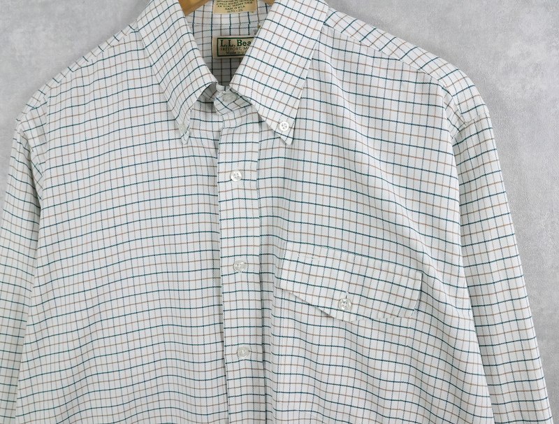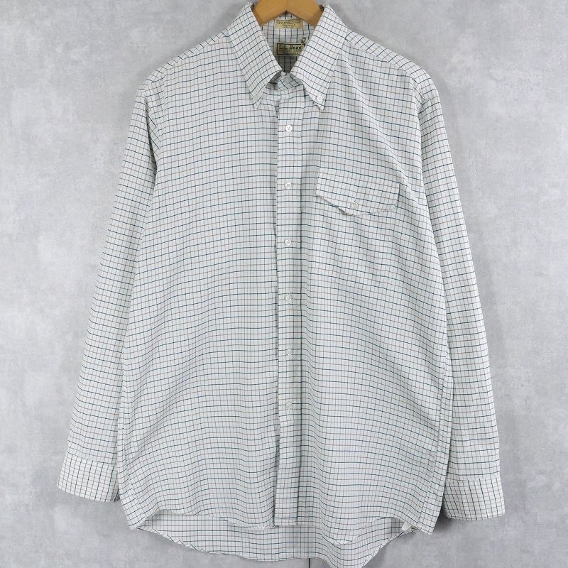 80's L.L.Bean USA製 タッタソールチェック柄 コットンポリ ボタンダウンシャツ SIZE16 1/2-35 [164829]