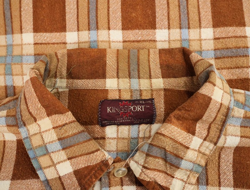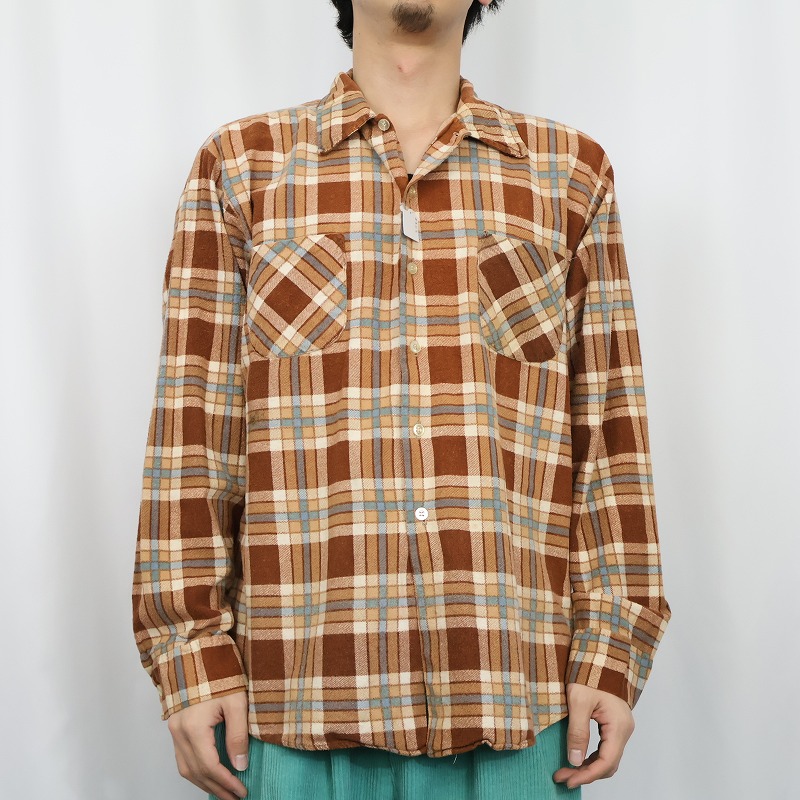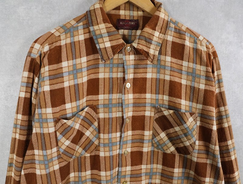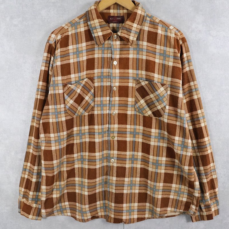 70's KINGSPORT チェック柄 ライトネルシャツ XL [164832]