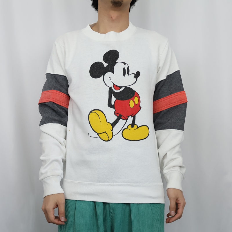 80〜90's Disney MICKEY MOUSE USA製 キャラクタープリントスウェット M [164835]
