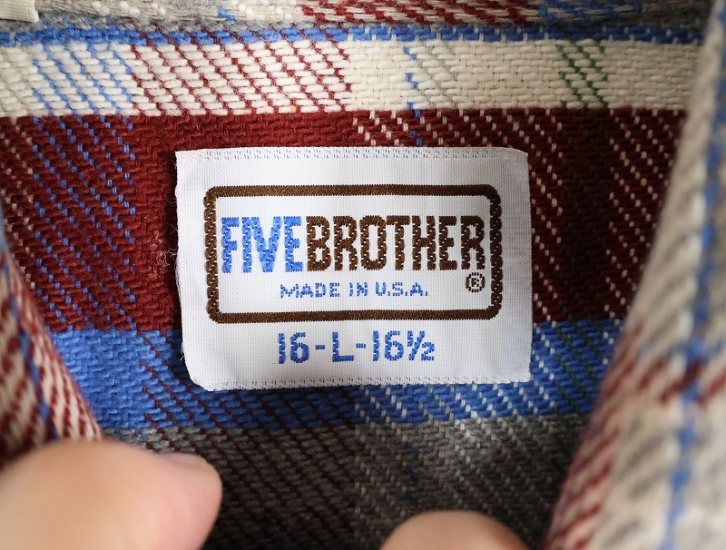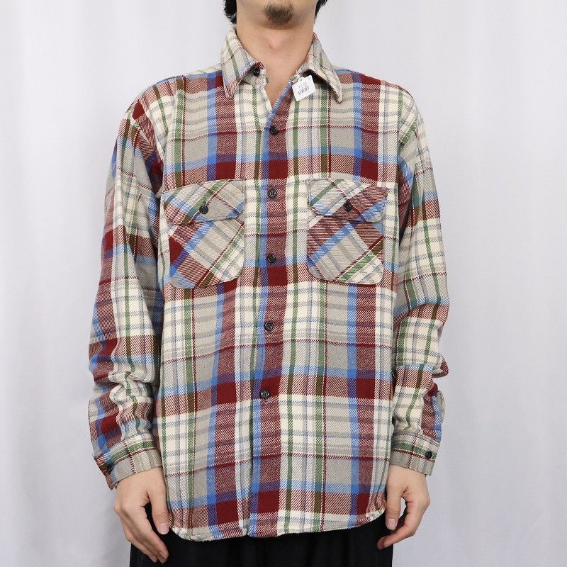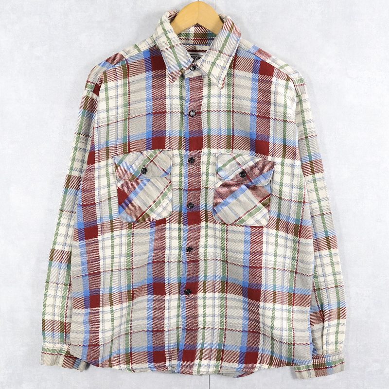 70〜80's FIVER BROTHER USA製 チェック柄 ヘビーネルシャツ L [164877]
