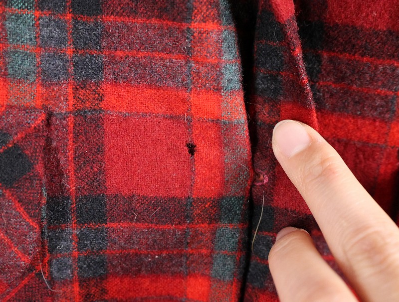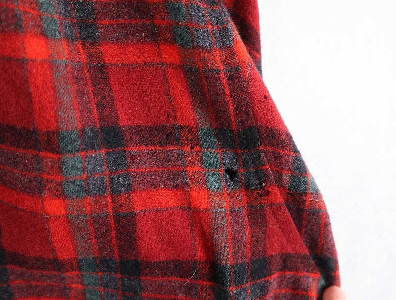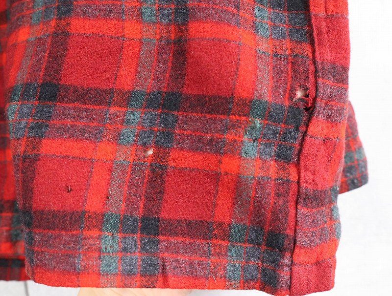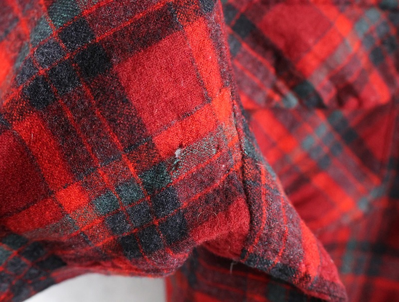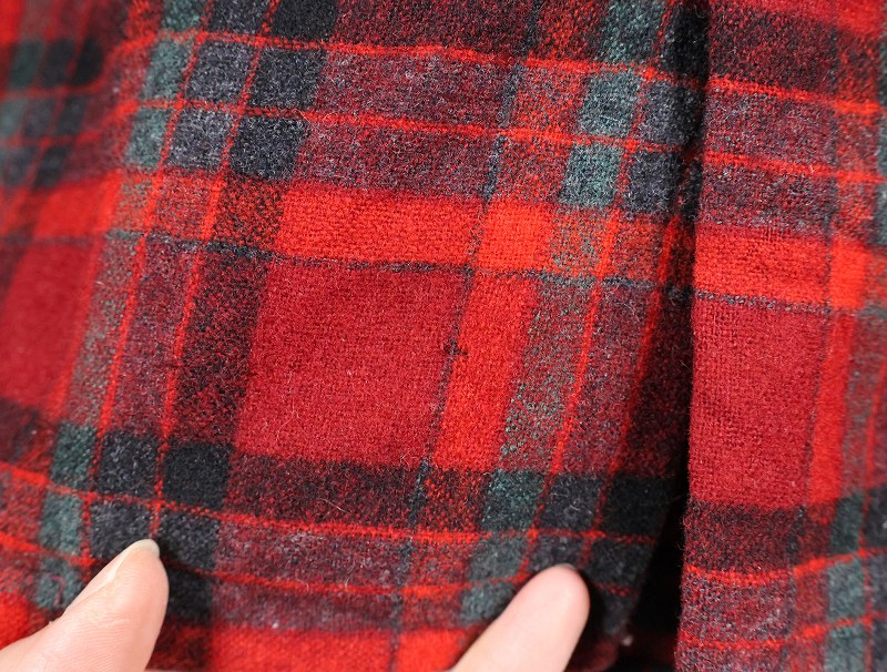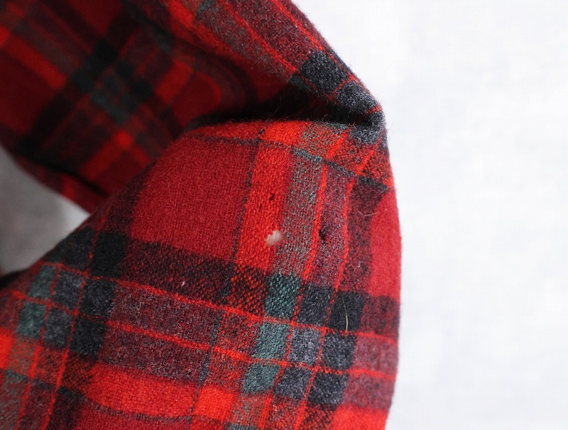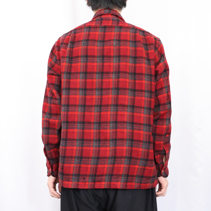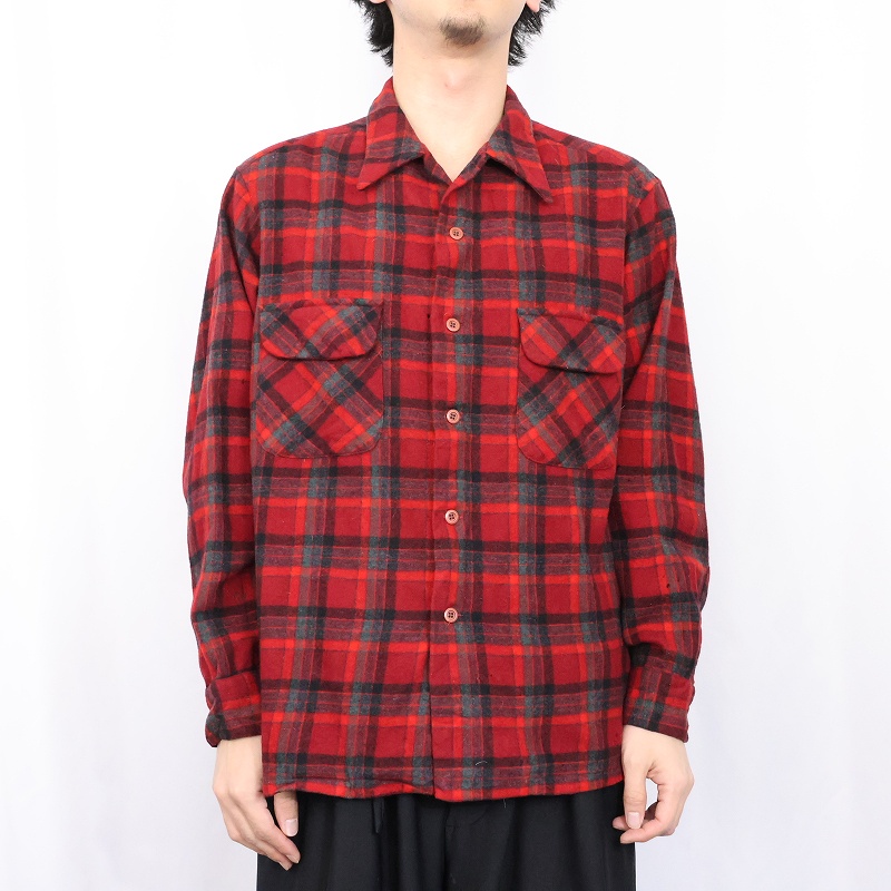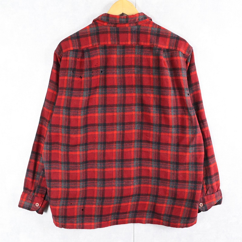 70's PENDLETON USA製 チェック柄 ウールオープンカラーシャツ XL [164882]