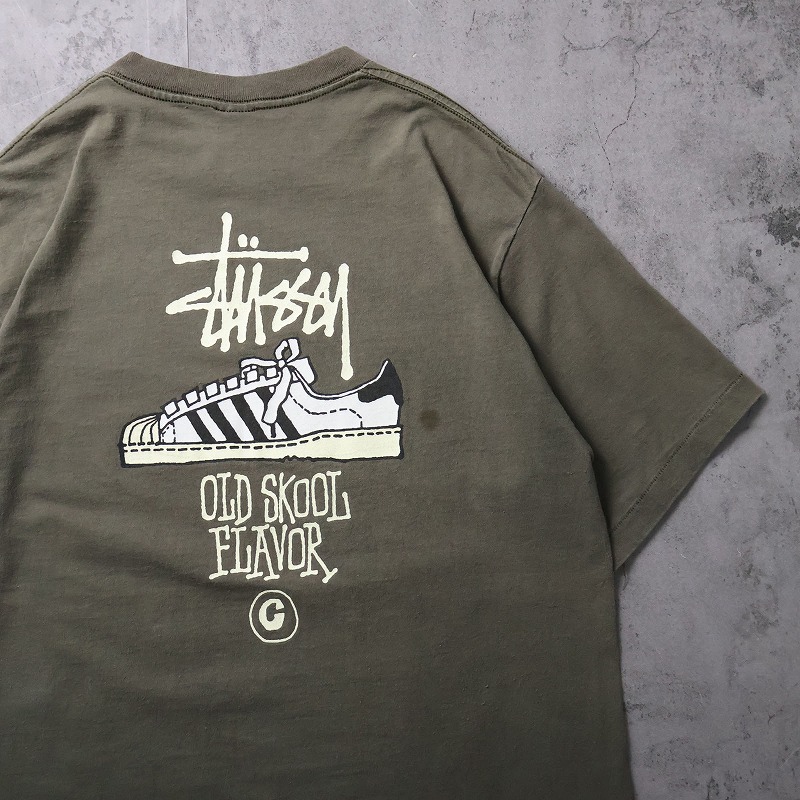 80's STUSSY 黒タグ USA製 "OLD SKOOL FLAVOR" プリントTシャツ L [164950]