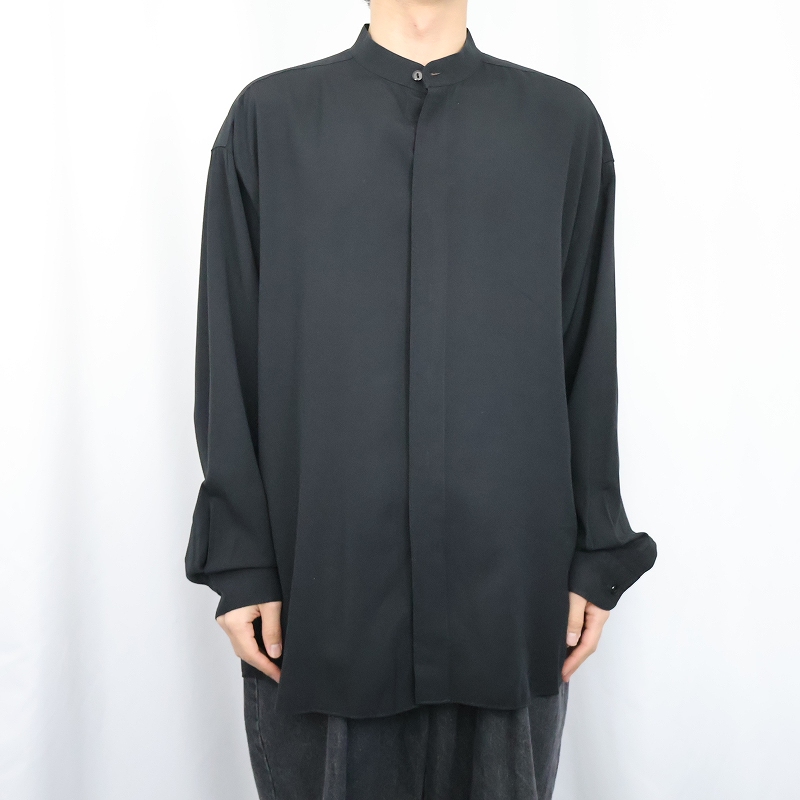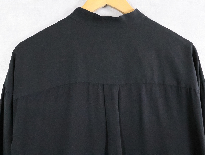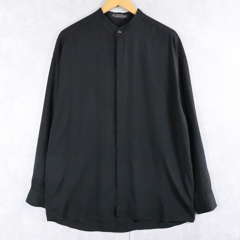 DOMANI PLATINUM レーヨン×ポリエステル バンドカラーシャツ BLACK L [164954]