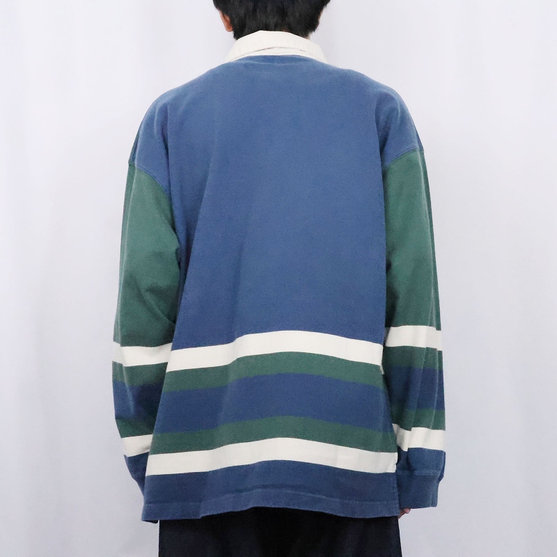 90's Eddie Bauer EBTEK マルチボーダー柄 ラガーシャツ L [164985]