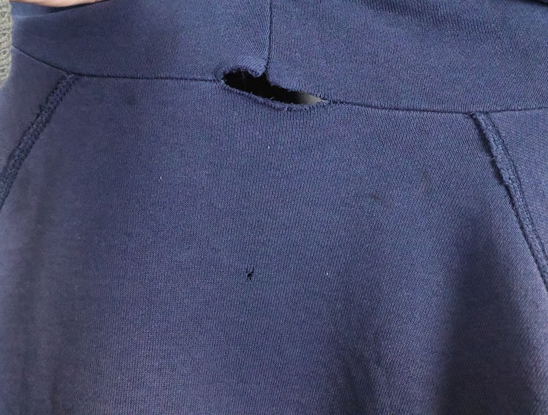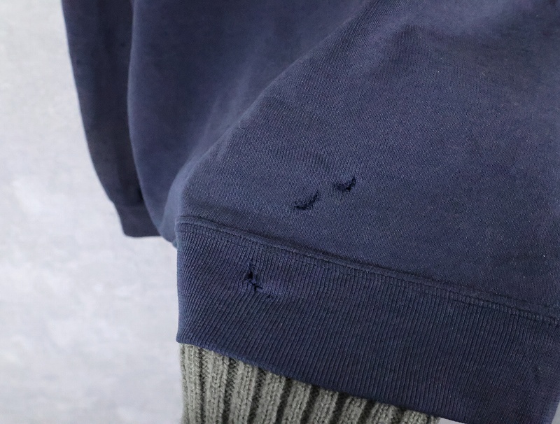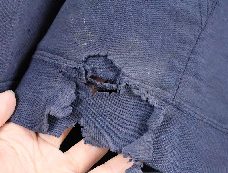 - 汚れやダメージ、穴や破れ、首元のカットがあり、ビンテージらしい良い雰囲気が出ており、大変かっこいい一点です。