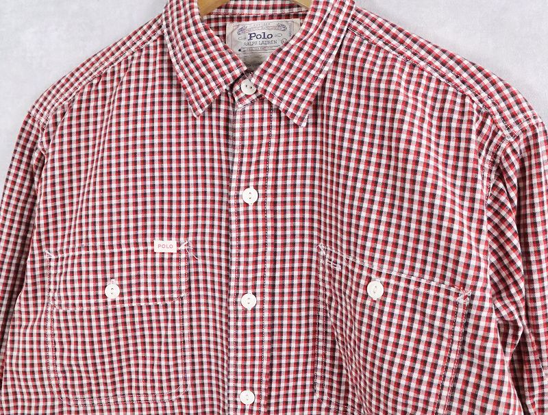 POLO Ralph Lauren 猫目ボタン チェック柄コットンシャツ M [165012]