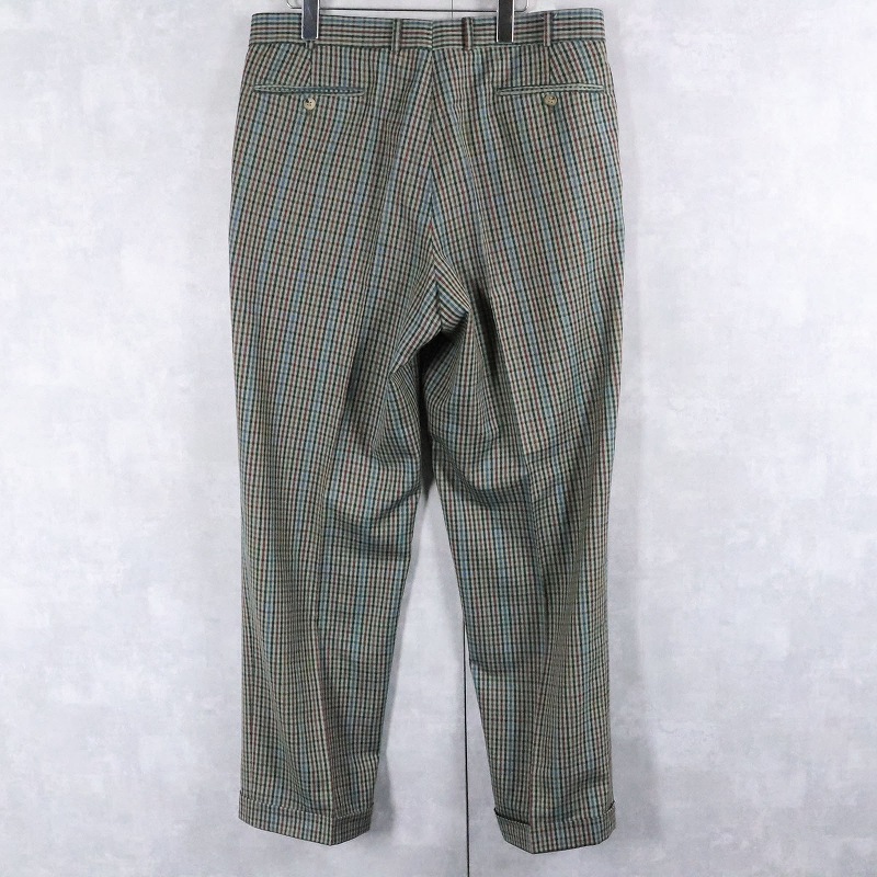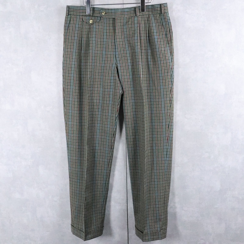 W J STAMM チェック柄 2タック ウールスラックス W35 [165030]