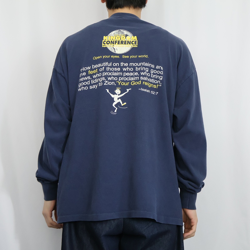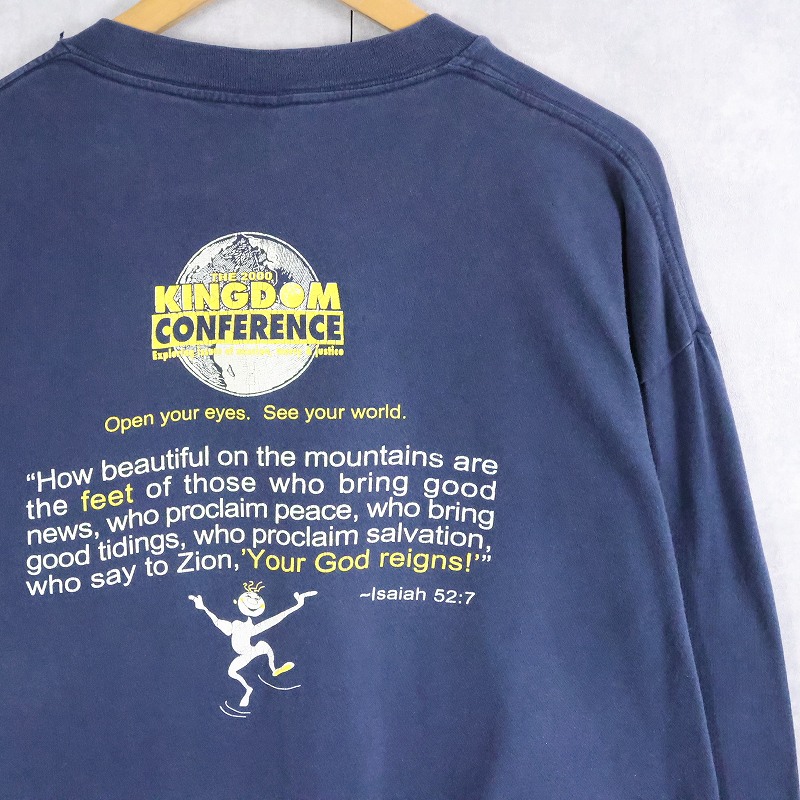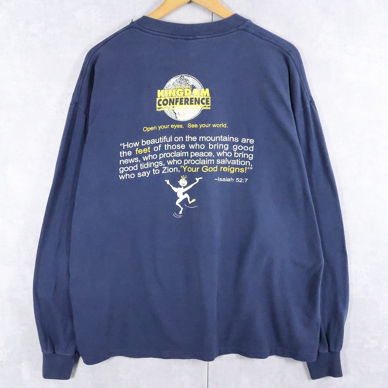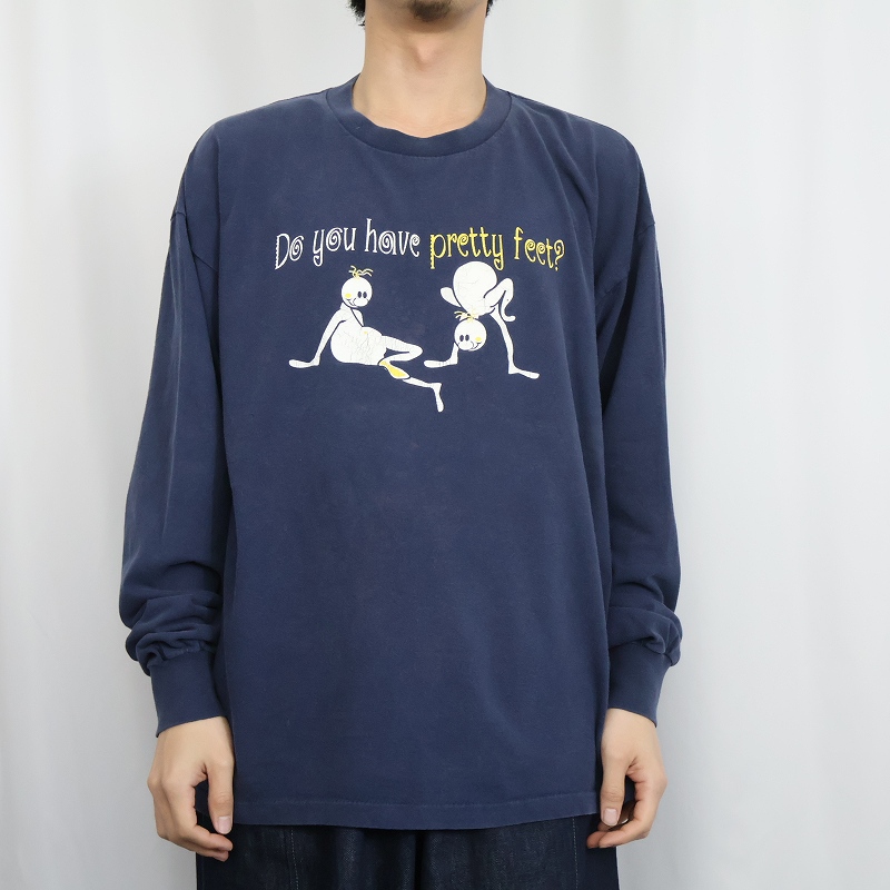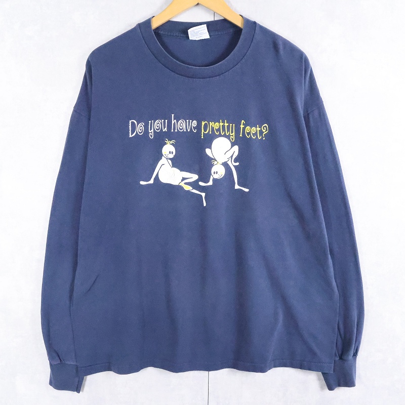 〜2000's USA製 KINGDOM CONFERENCE "Do you have pretty feet?" 宗教イベント プリントロンT NAVY XL [165045]