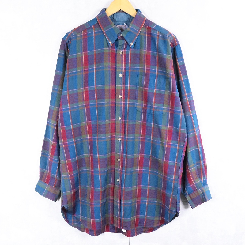 70's PENDLETON USA製 チェック柄 ウールボタンダウンシャツ L [165061]