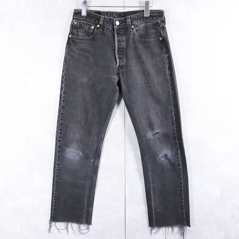 90's Levi's 501 USA製 "サルファブラック" カットオフブラックデニムパンツ W31 [165064]