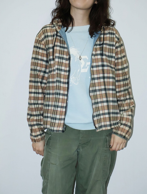 50〜60's チェック柄 リバーシブルジップパーカー [165071]