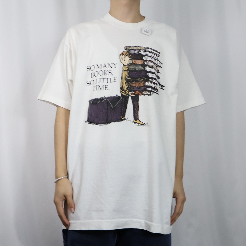 Edward Gorey "SO MANY BOOKD; SO LITTLE TIME." イラストプリントTシャツ [165077]