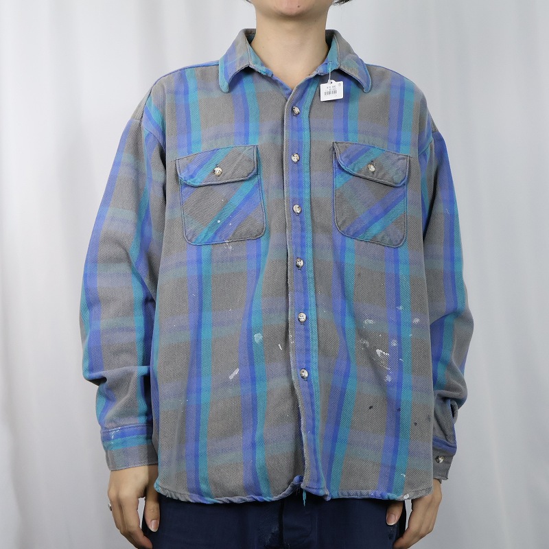 70〜80's FIVER BROTHER USA製 チェック柄 ヘビーネルシャツ 2XL [165085]