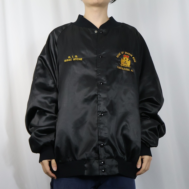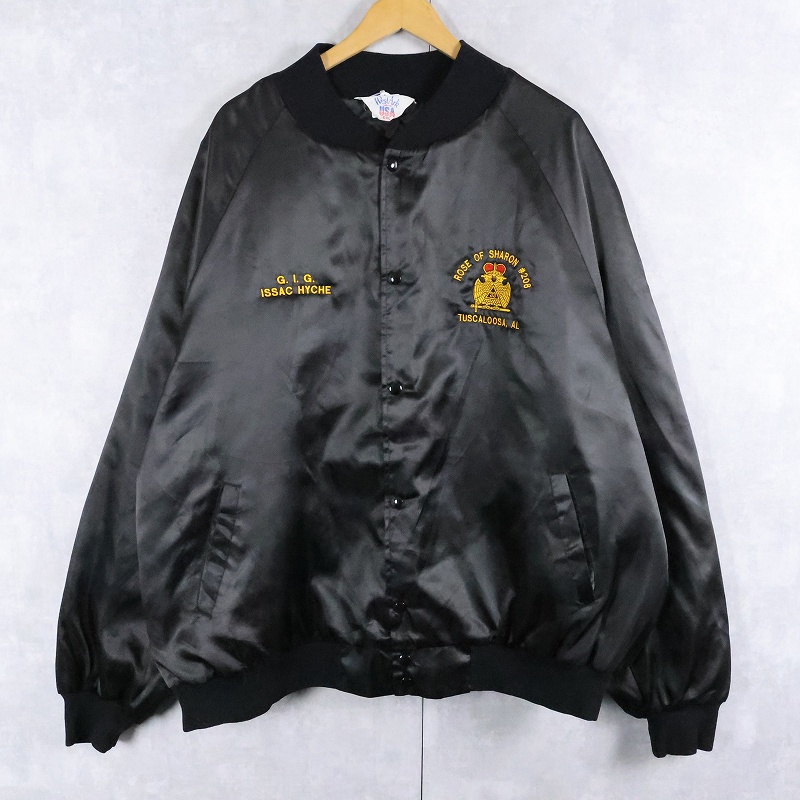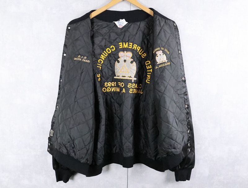 90's West Ark USA製 "United Supreme Council 33" 刺繡入り キルティングライナー ナイロンスタジャン BLACK 5XL [165101]