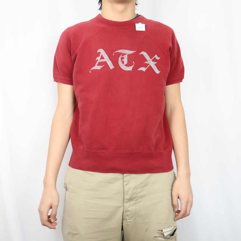 60's ARTEX "ATX" フロッキープリント半袖スウェット L [165109]