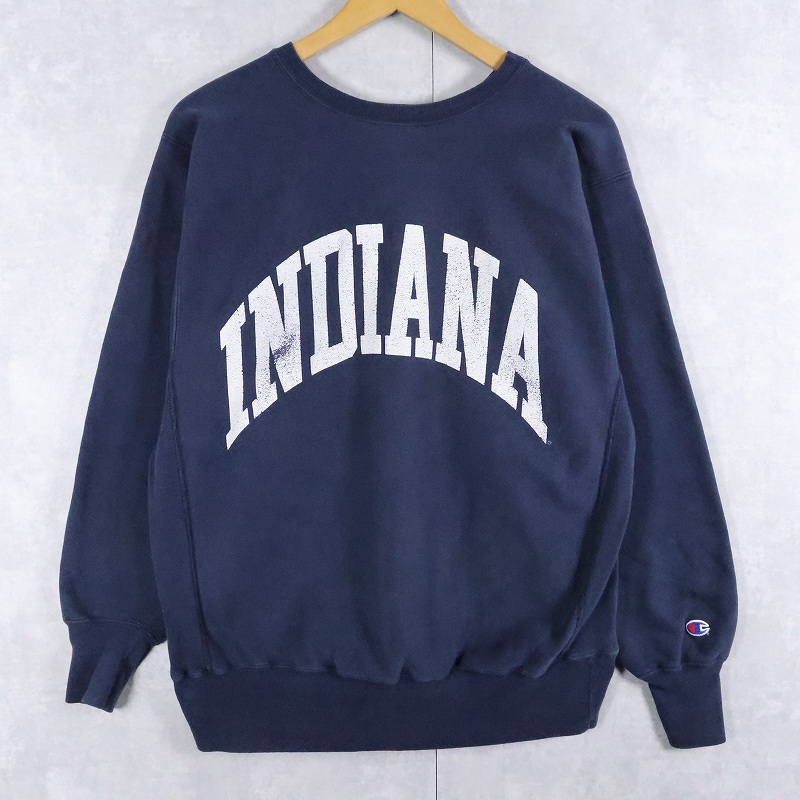 90's Champion REVERSE WEAVE USA製 "INDIANA" プリントスウェット NAVY L [165131]
