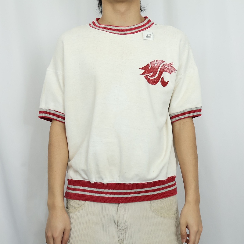 60's Champion 大文字ランタグ USA製 "Cougars" プリント半袖スウェット L [165136]