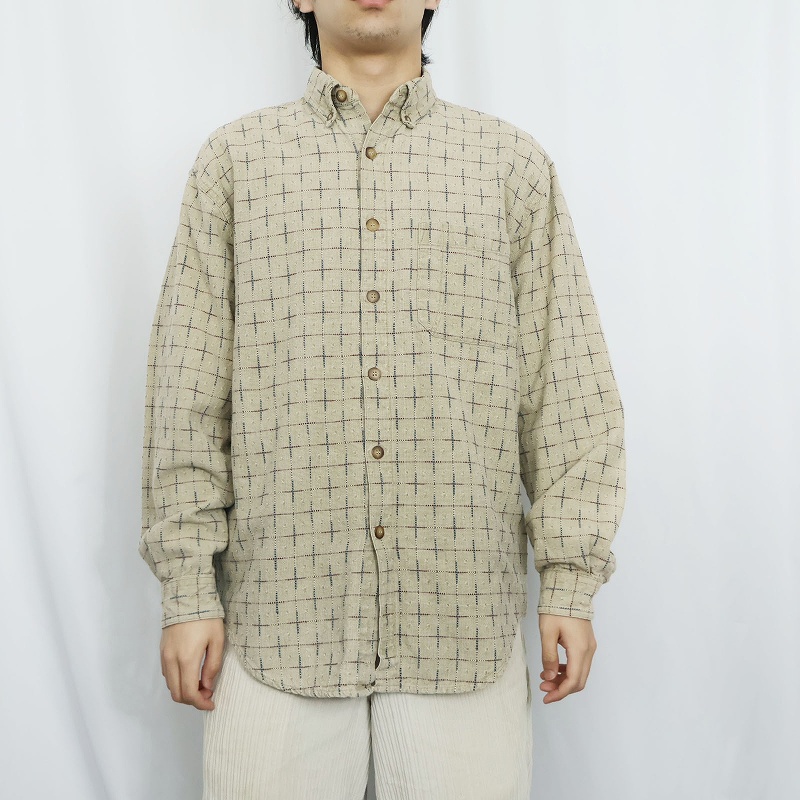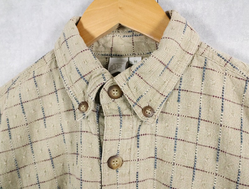 90's THE TERRITORY AHEAD チェック柄織り ボタンダウンシャツ M [165151]