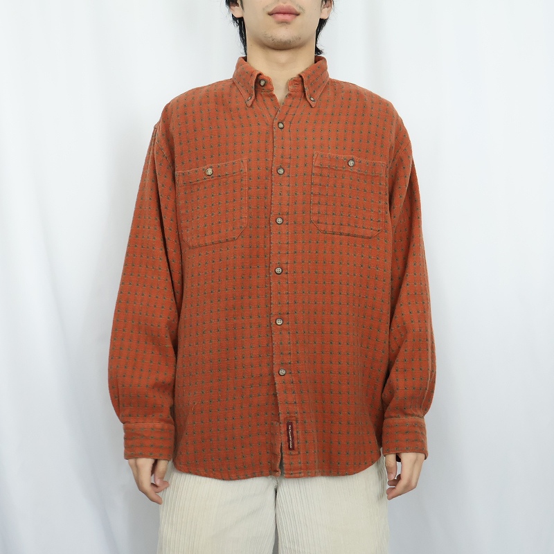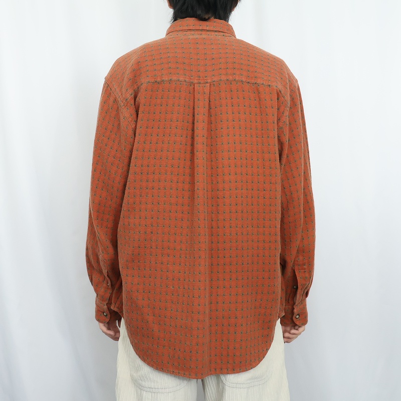 90's THE TERRITORY AHEAD チェック柄織り ボタンダウンシャツ L [165154]