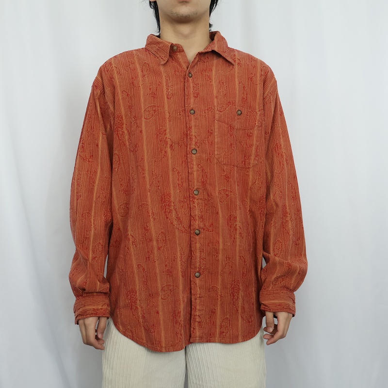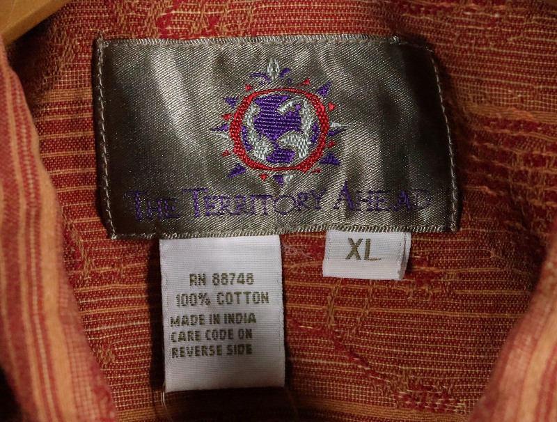 90's THE TERRITORY AHEAD 柄織り コットンシャツ XL [165155]