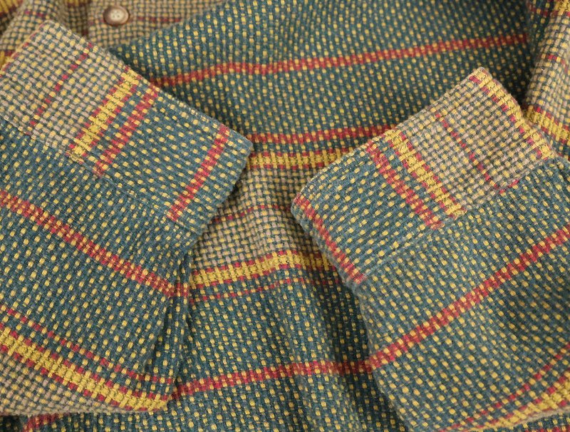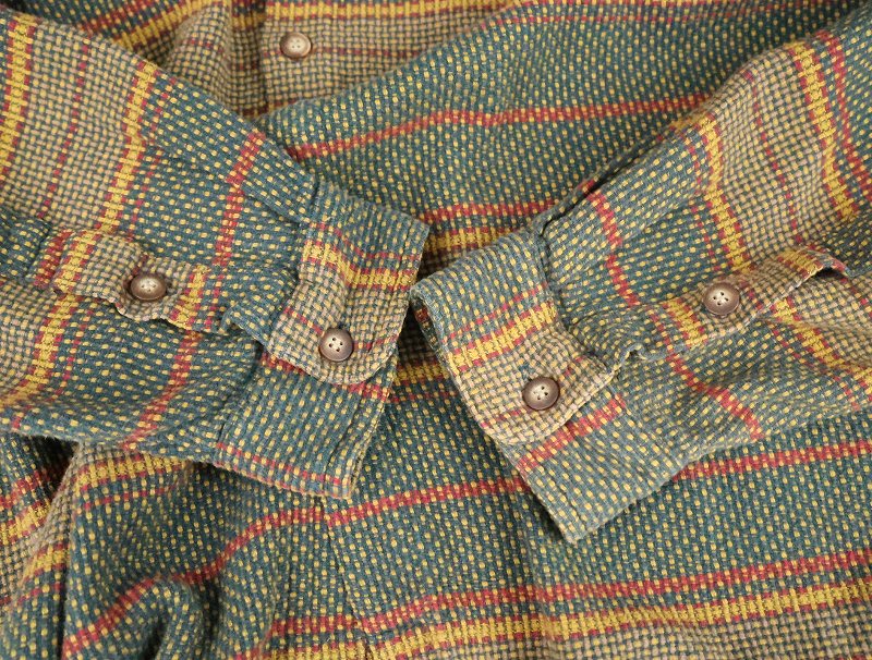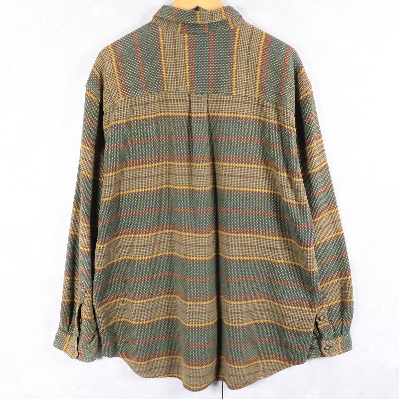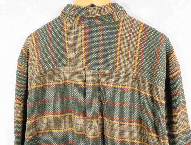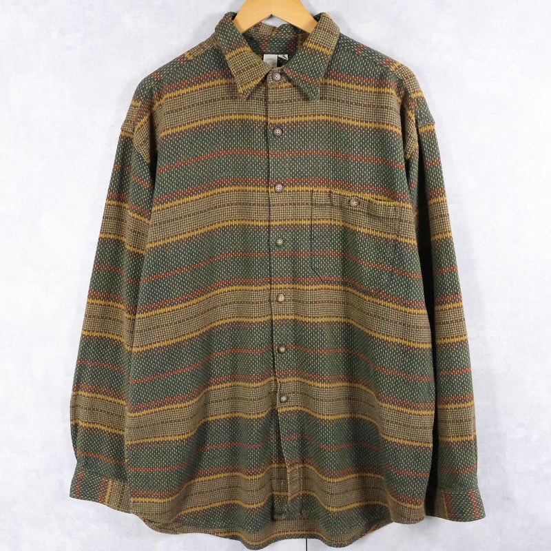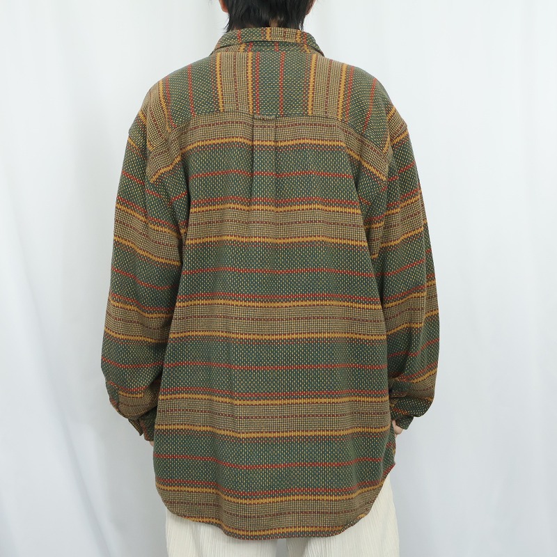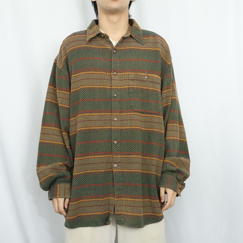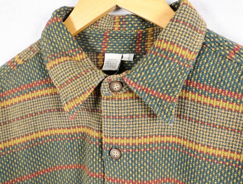 90's THE TERRITORY AHEAD マルチボーダー柄織り コットンシャツ XL [165156]