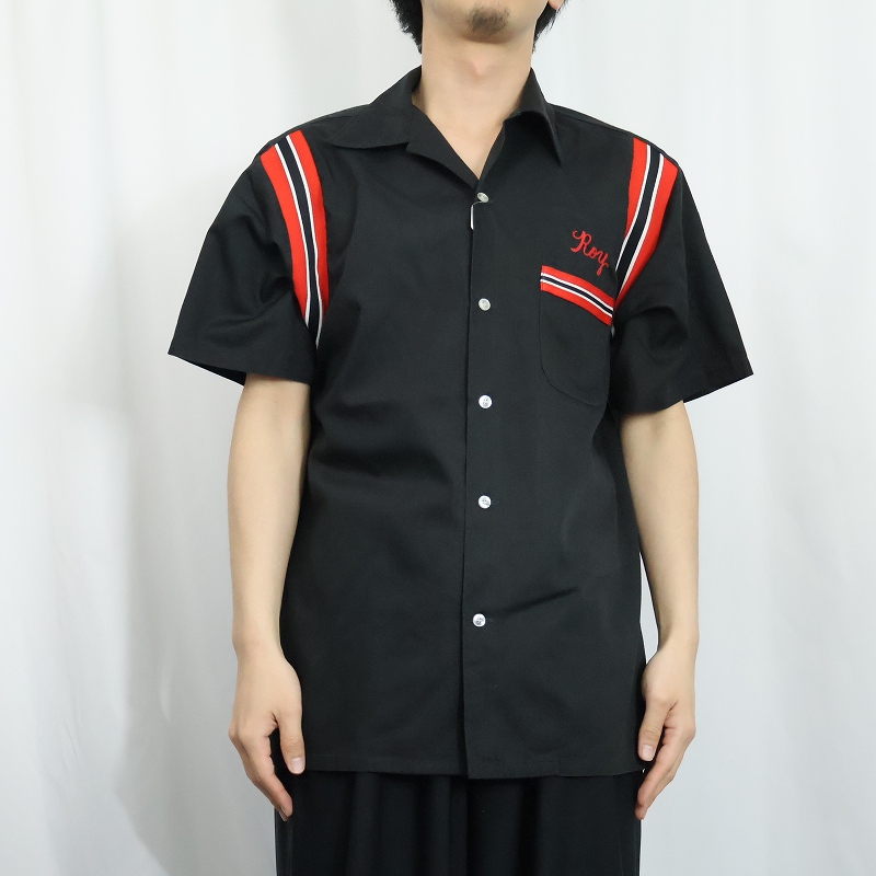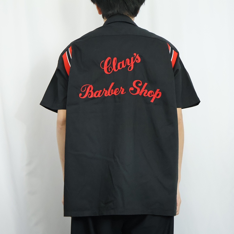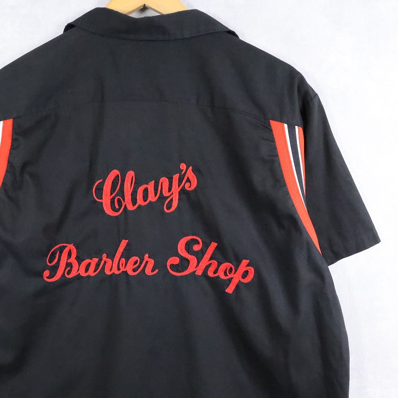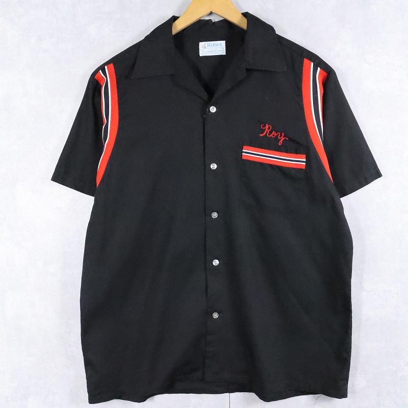 70's Hilton USA製 "Clay's Barber Shop" チェーン刺繍 コットンボウリングシャツ BLACK L [165166]
