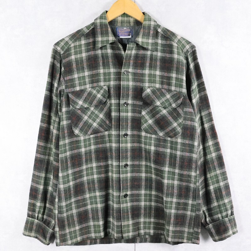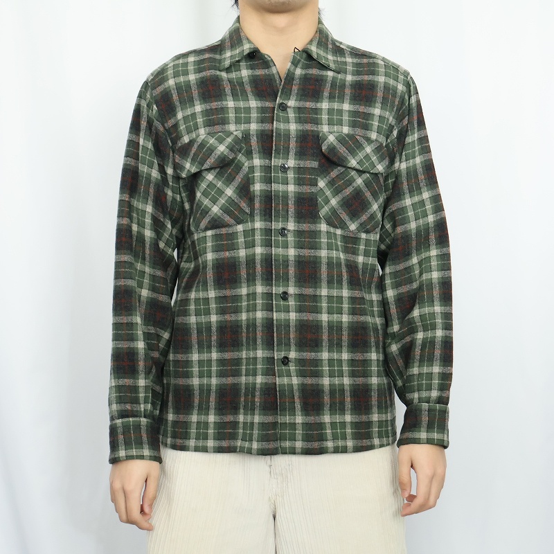 50's PENDLETON チェック柄 ウールオープンカラーシャツ S [165209]