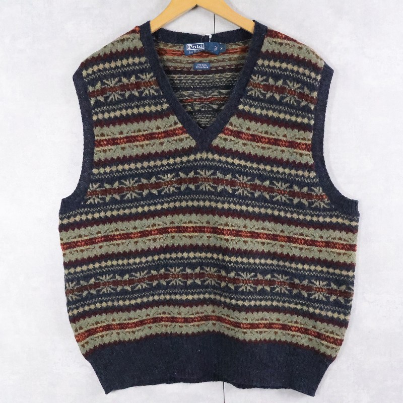 POLO Ralph Lauren フェアアイル柄 ウール×アルパカニットベスト XL [165211]