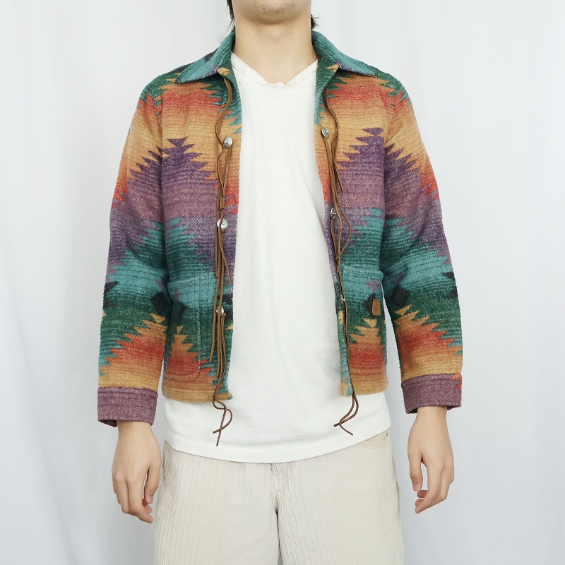 LAUREN Ralph Lauren USA製 ネイティブ柄 コンチョボタン ウール×ナイロンジャケット S [165217]