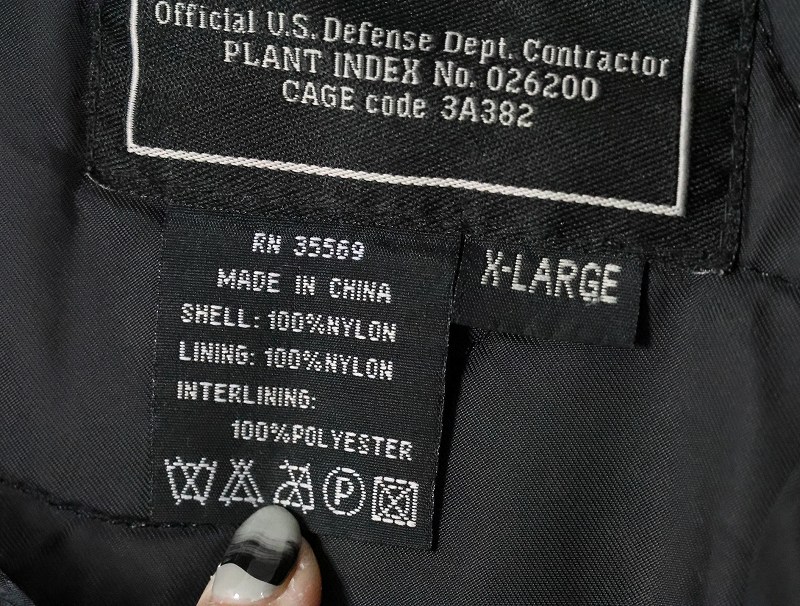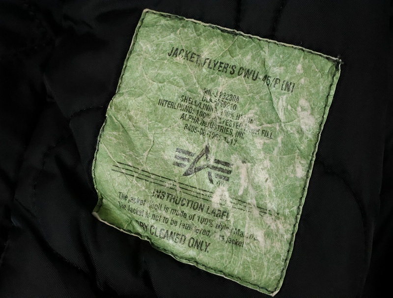 ALPHA INDUSTRIES "CWU-45/P TYPE" フライトジャケット BLACK X-LARGE [165218]
