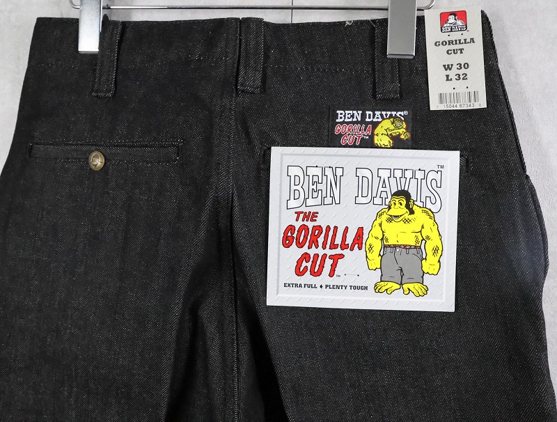 BEN DAVIS "THE GORILLA CUT" ゴリラカットデニムパンツ BLACK DENIM フラッシャー付き未使用品 W30 L32 [165291]