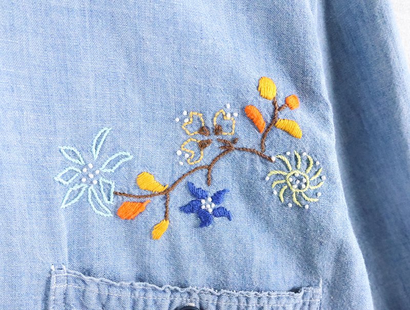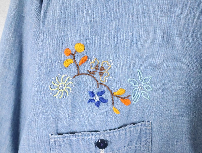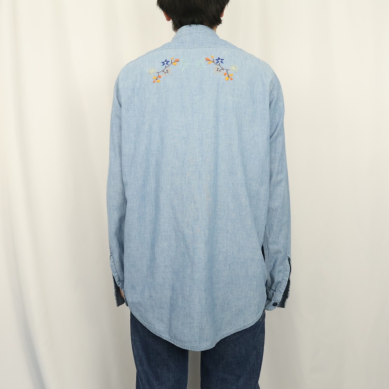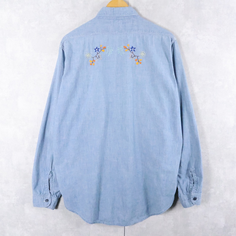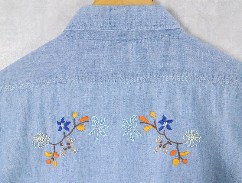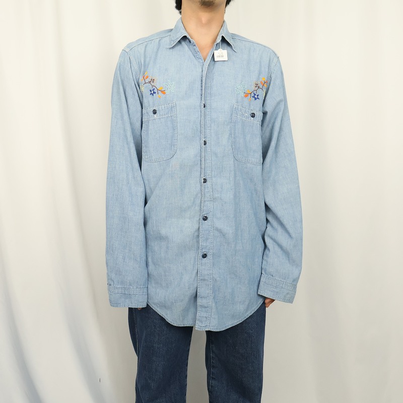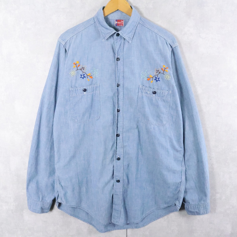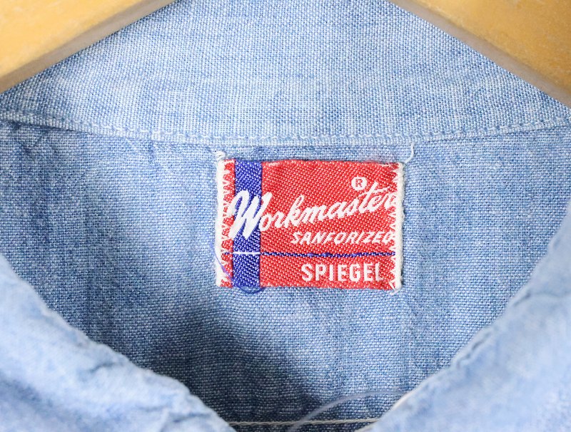 50〜60's Workmaster by SPIEGEL 猫目ボタン ハンド刺繍 シャンブレーシャツ [165310]