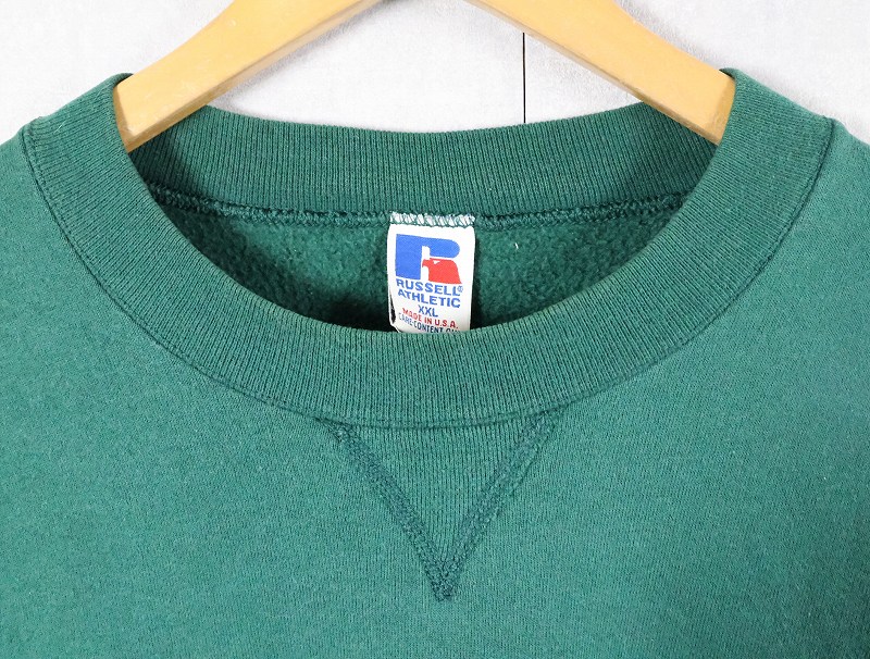 90's RUSSELL ATHLETIC 前V 無地スウェット XXL [165338]