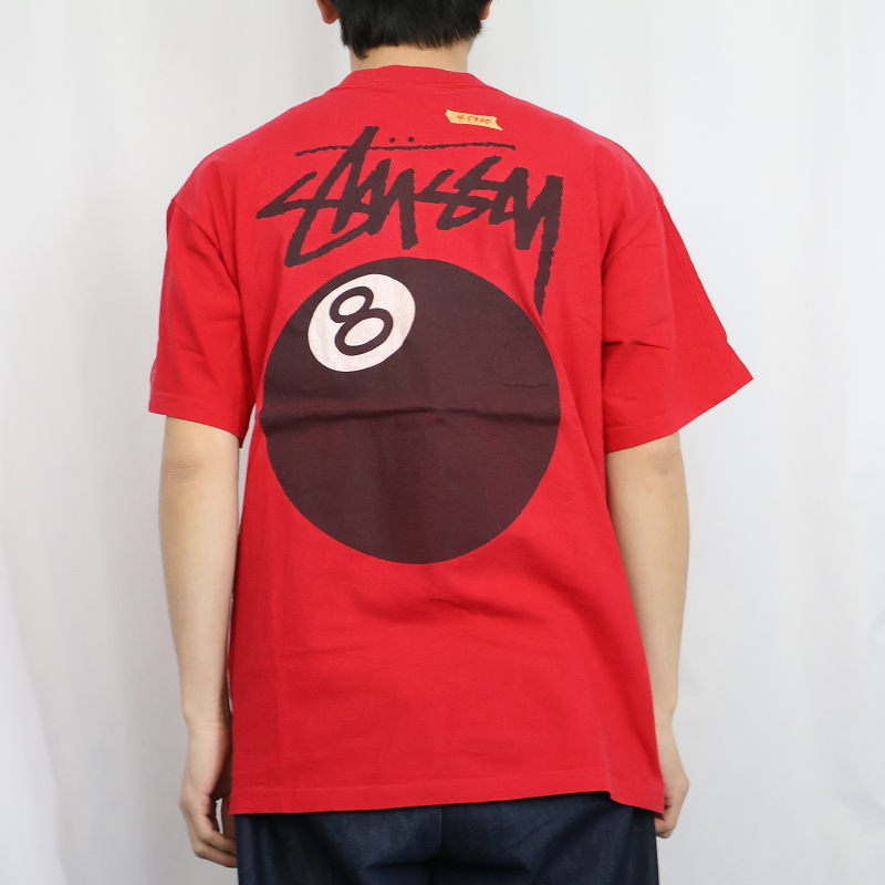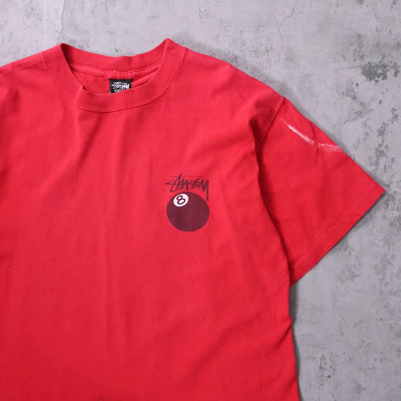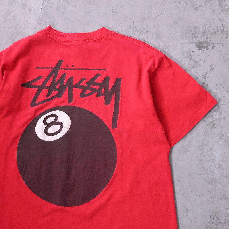 80's STUSSY 黒タグ USA製 "8 Ball" プリントTシャツ L [165375]