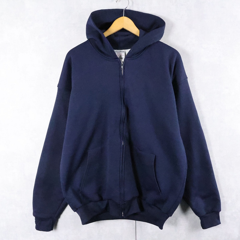 90's PLUMA 裏サーマル ポリエステル スウェットジップパーカー NAVY XL [165452]