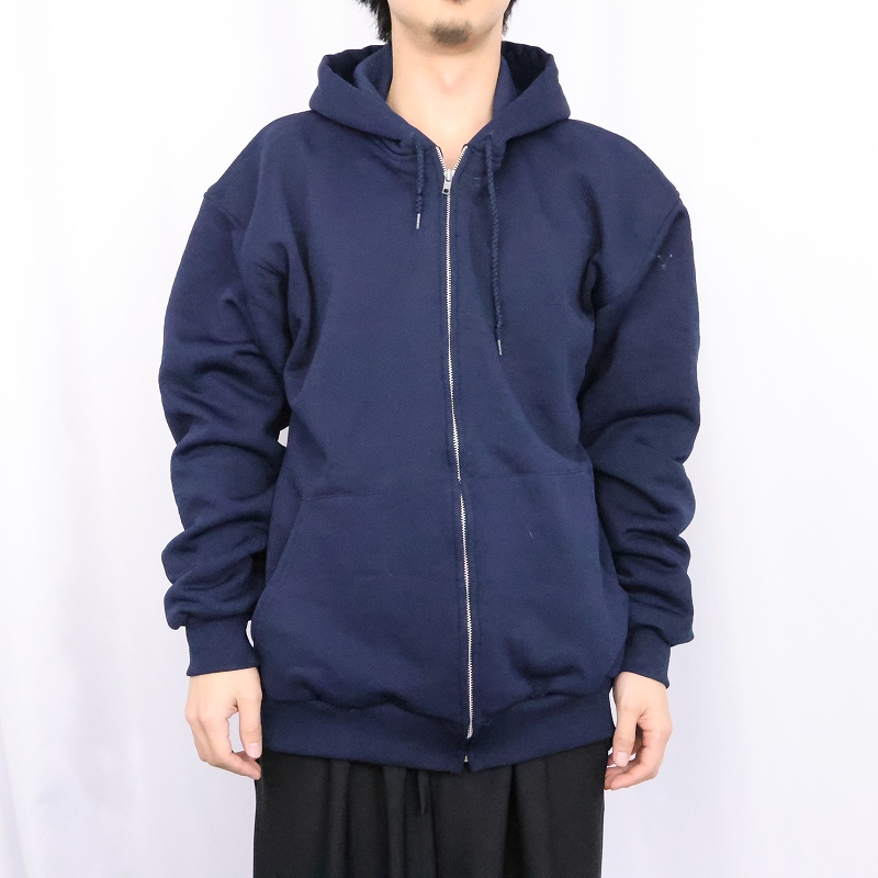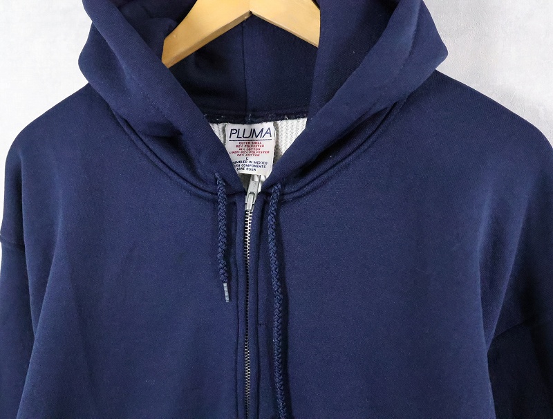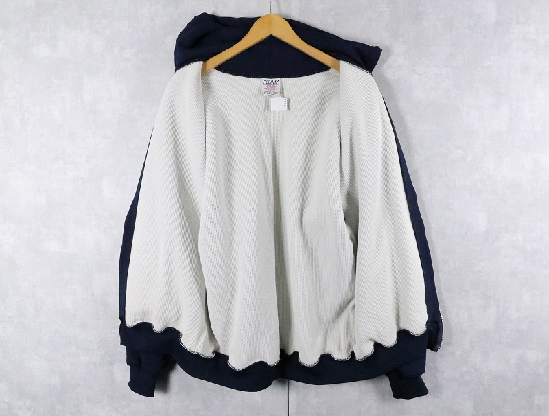 90's PLUMA 裏サーマル ポリエステル スウェットジップパーカー NAVY M [165453]