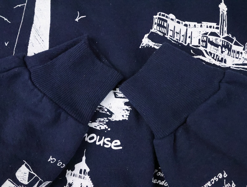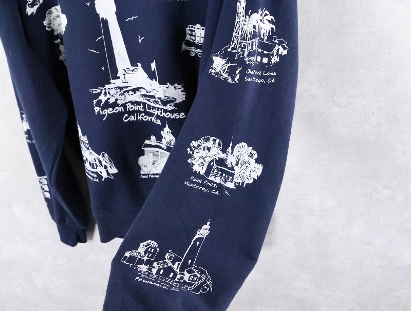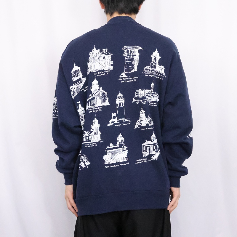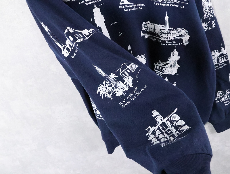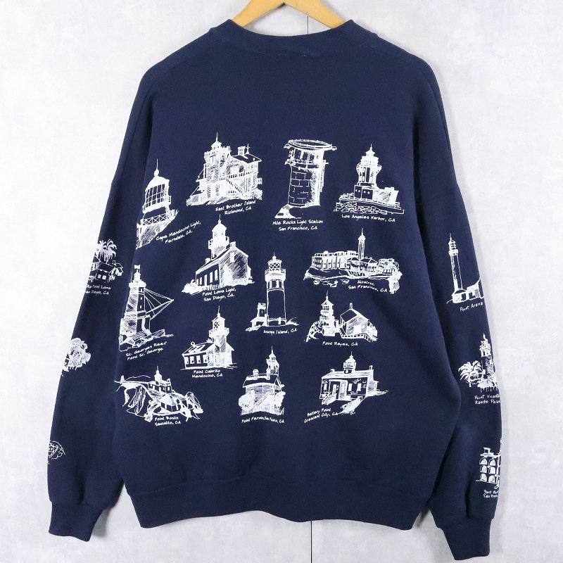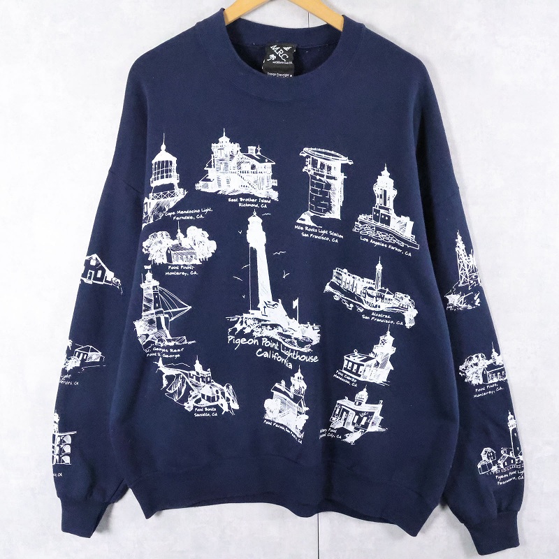 90's MICHIGAN RAG CO. ライトハウス柄 プリントスウェット NAVY 2X [165460]