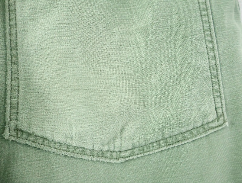 - 汚れやダメージ、バックポケットのボタンの付け替えなどがありますが、とても雰囲気の良い一点です。