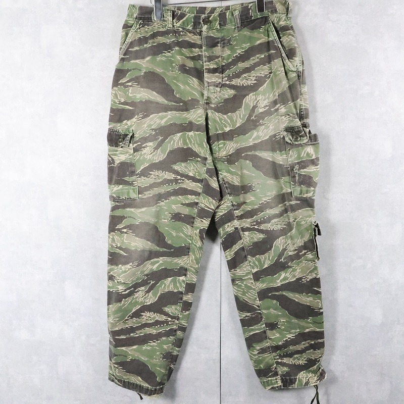 90's〜 USA製 タイガーストライプカモ柄 コットンカーゴパンツ MEDIUM [165468]