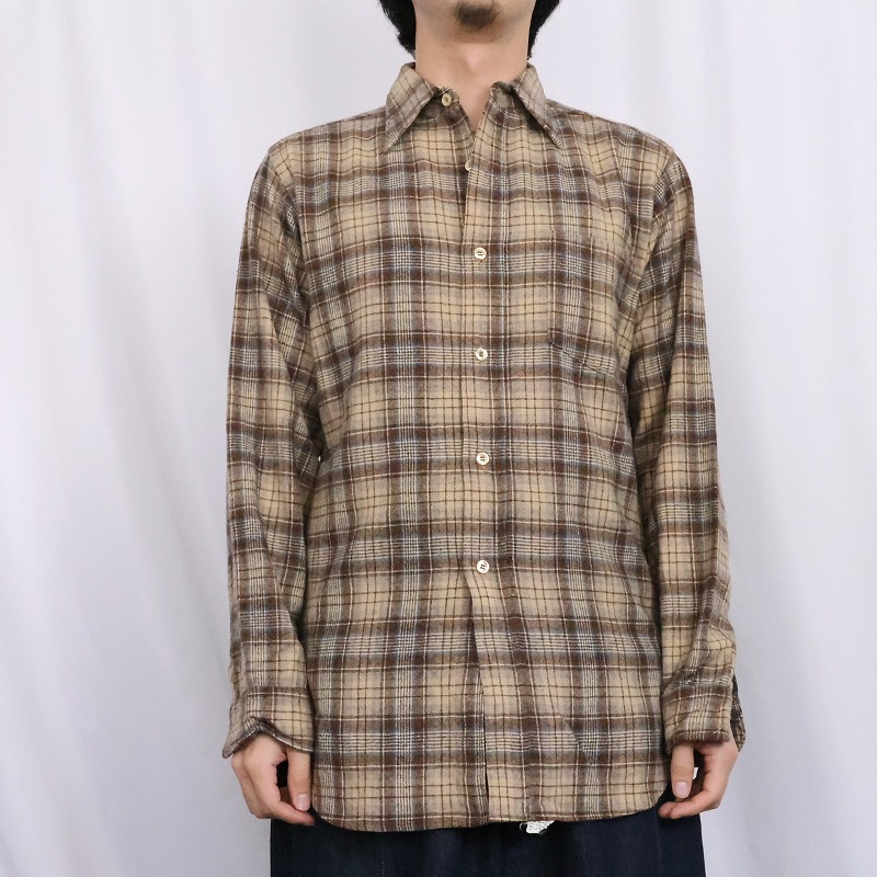 70's PENDLETON USA製 チェック柄 ウールシャツ S [165483]