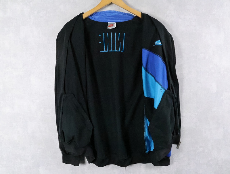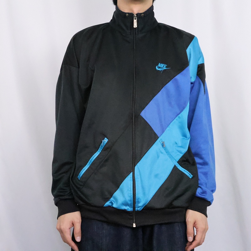 90's NIKE 銀タグ 切り替えデザイン トラックジャケット BLACK L [165486]