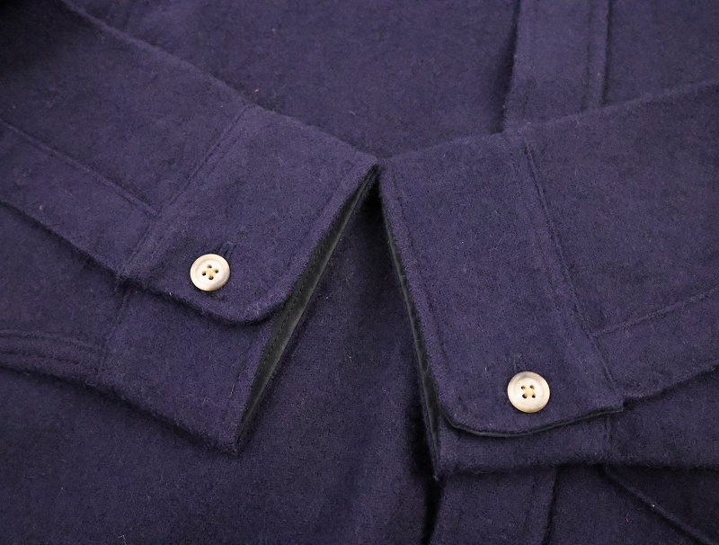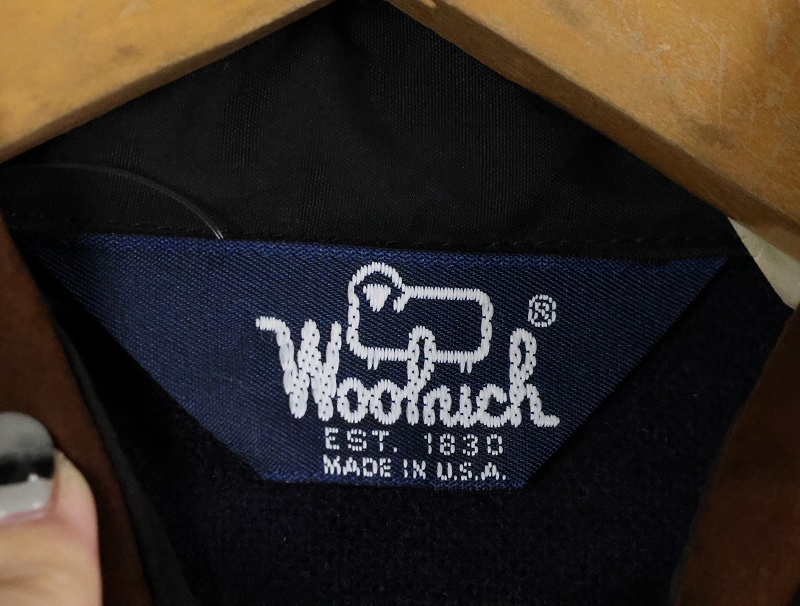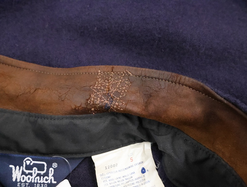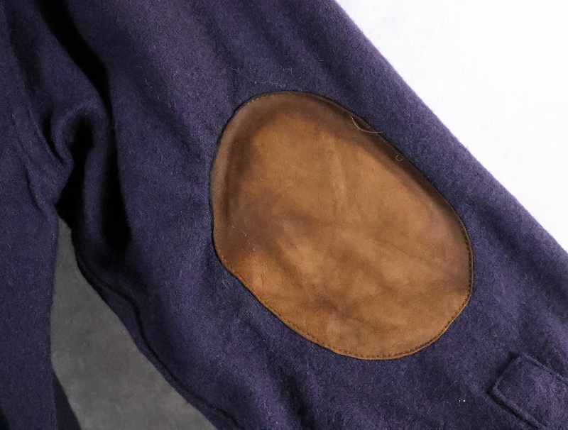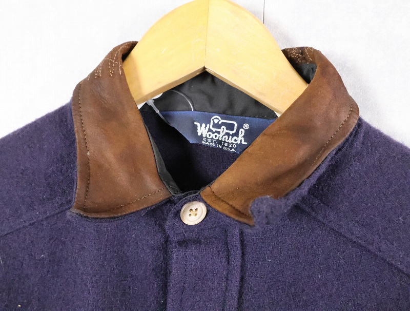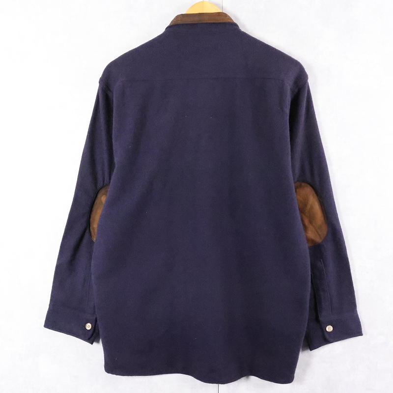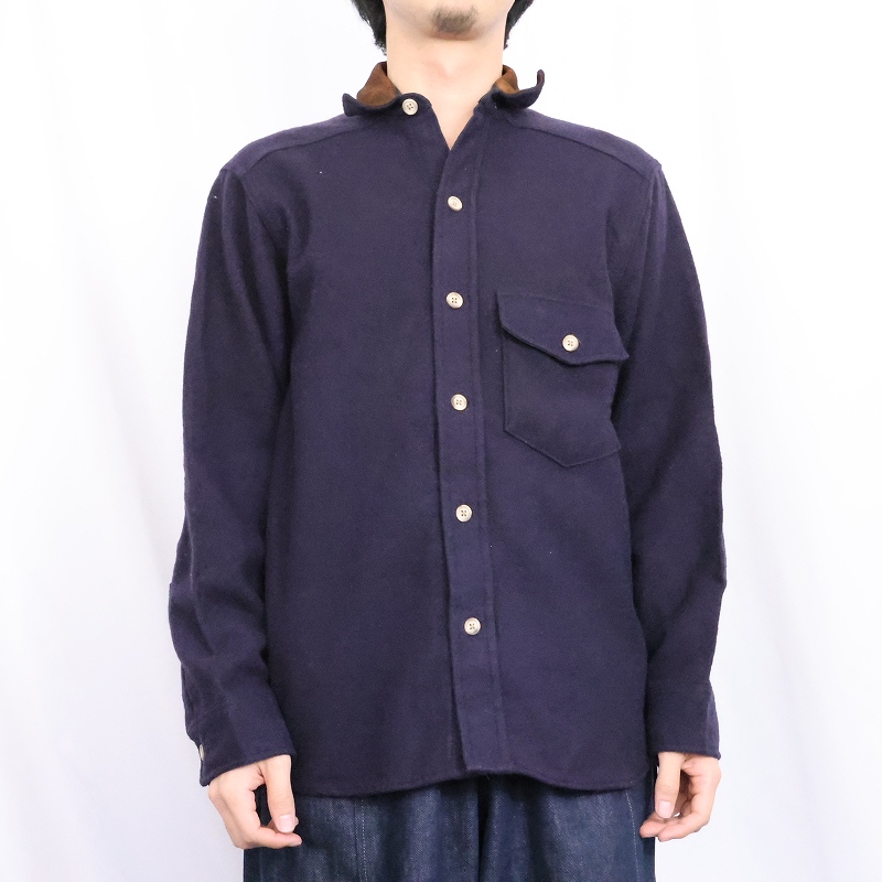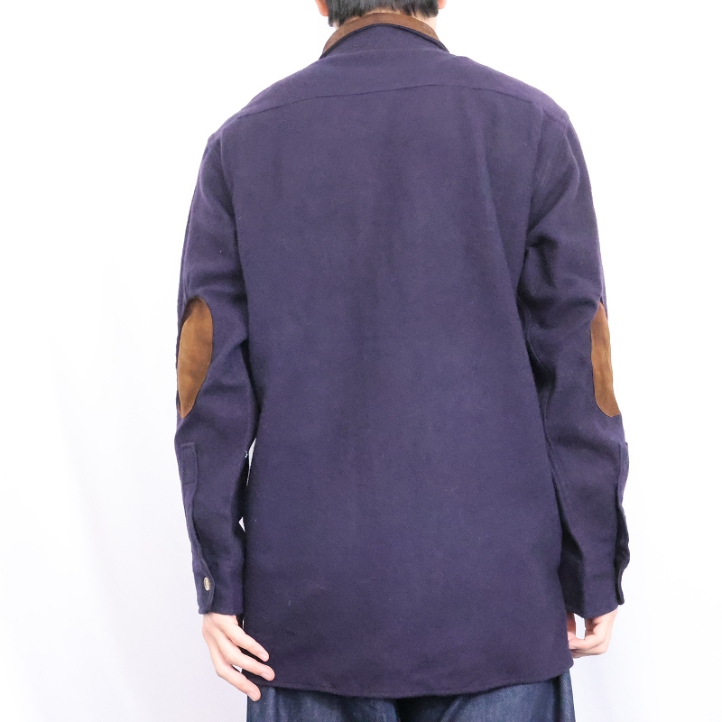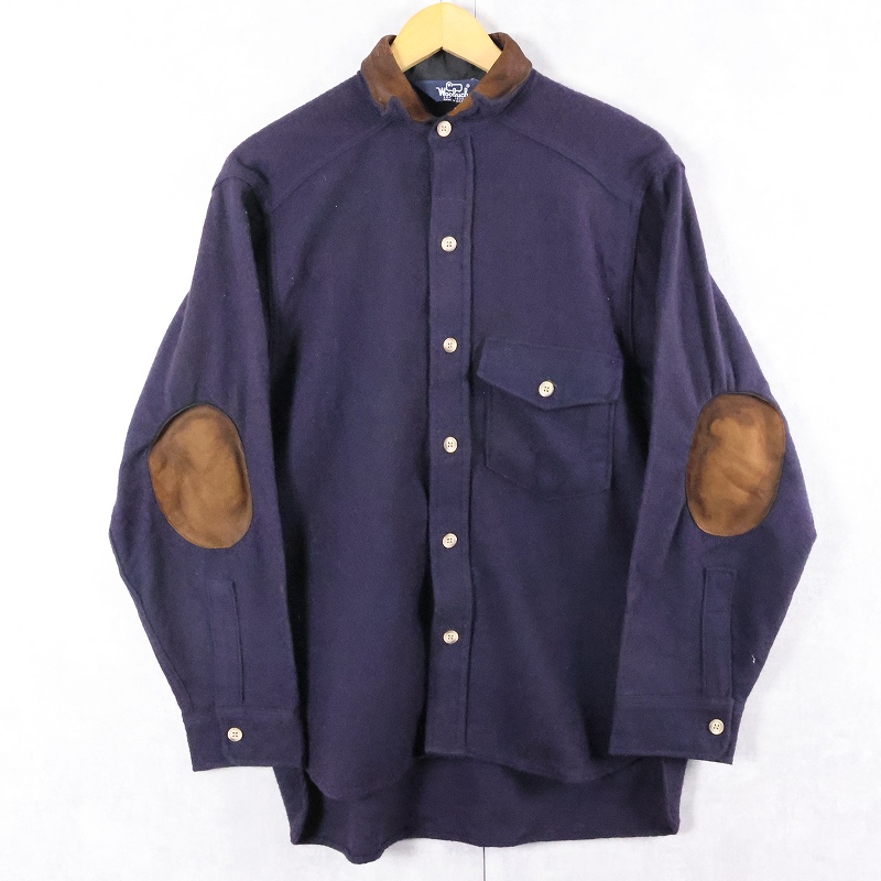 80's Woolrich USA製 エルボーパッチ付き レザー切り替え ウールシャツ NAVY S [165492]