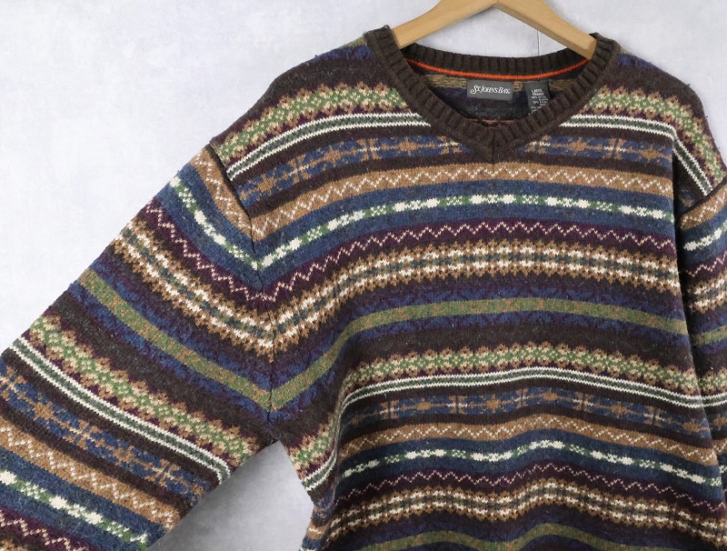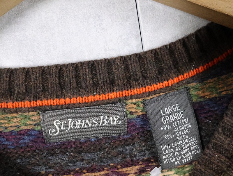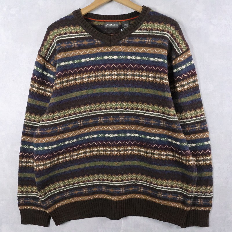 ST.JOHN'S BAY 総柄 コットン×ナイロンニットセーター L [165534]