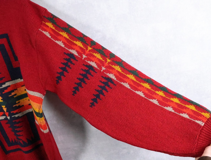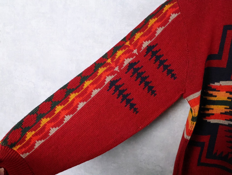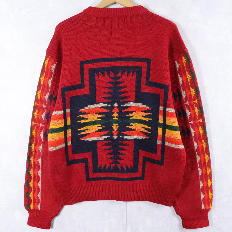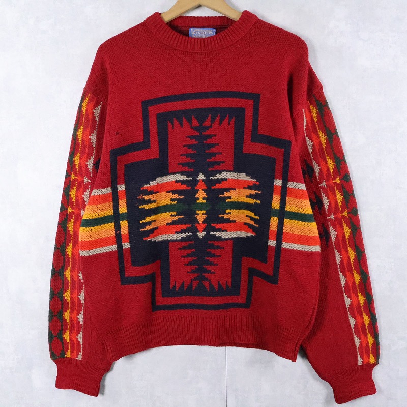 70's PENDLETON USA製 ネイティブ柄 ウールニットセーター XL [165538]
