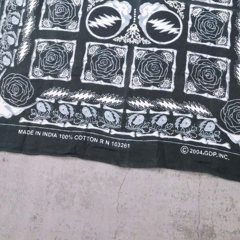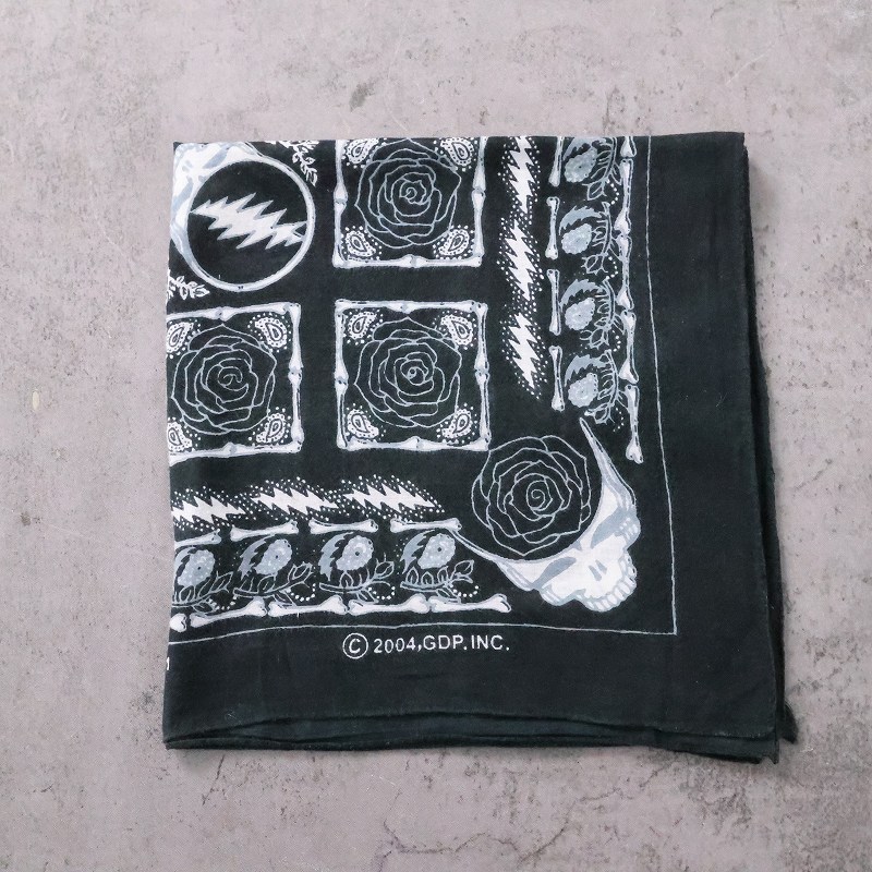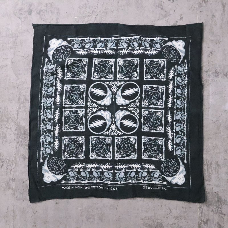2000's GRATEFUL DEAD "SKULL&ROSES" ロックバンド プリントバンダナ BLACK [165555]