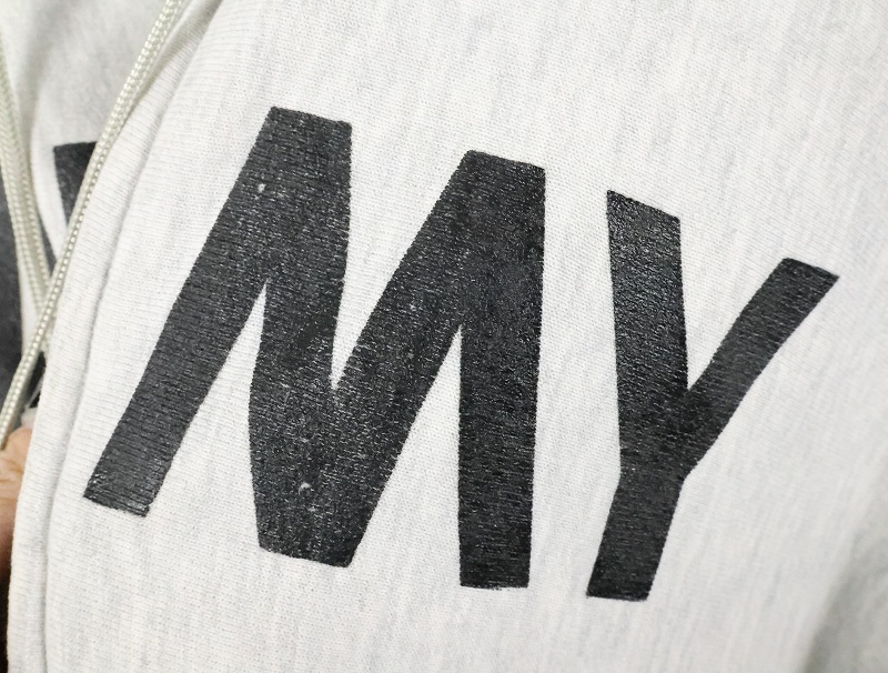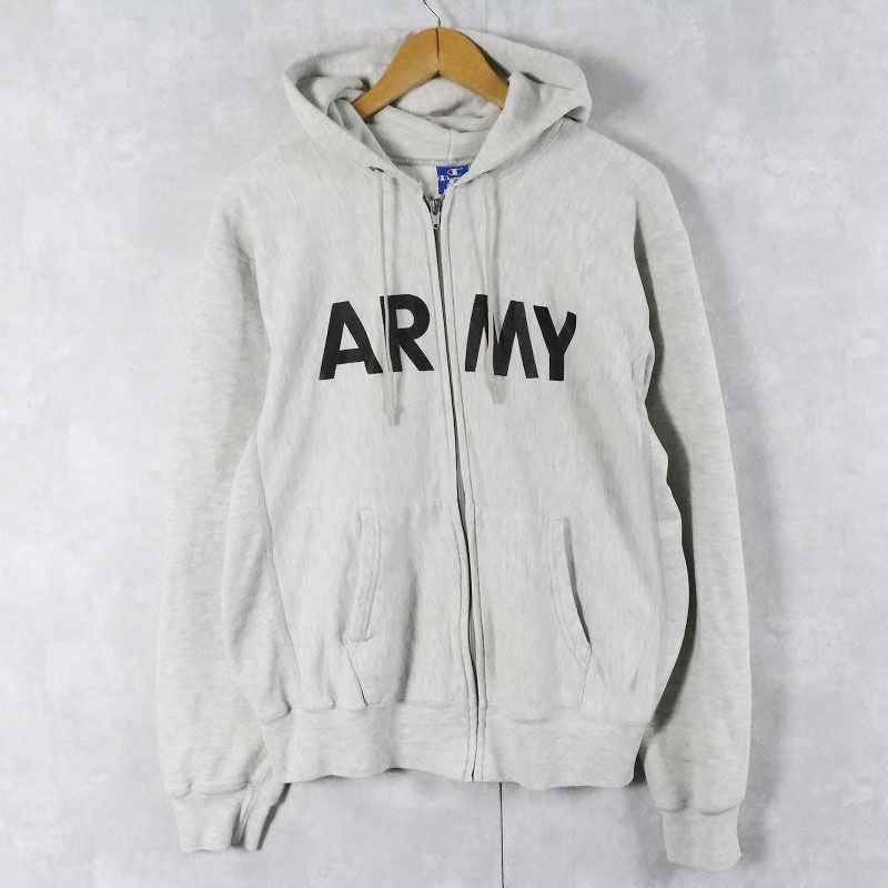 80〜90's Champion 青刺繍タグ 中期 USA製 "ARMY" スウェットジップパーカー M [165558]