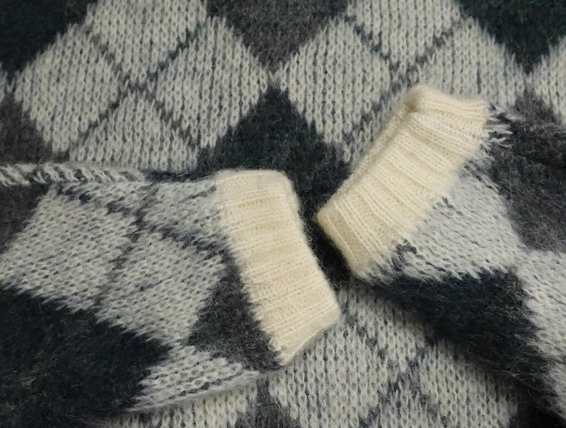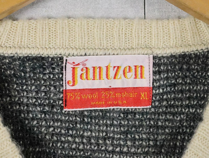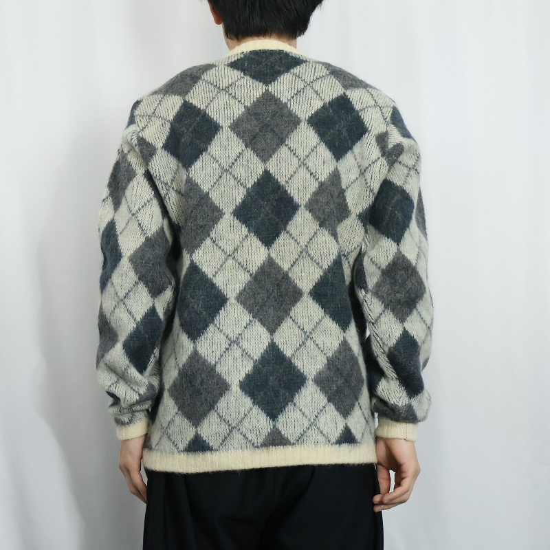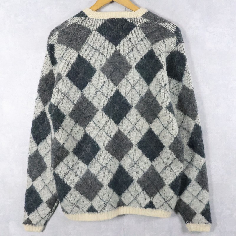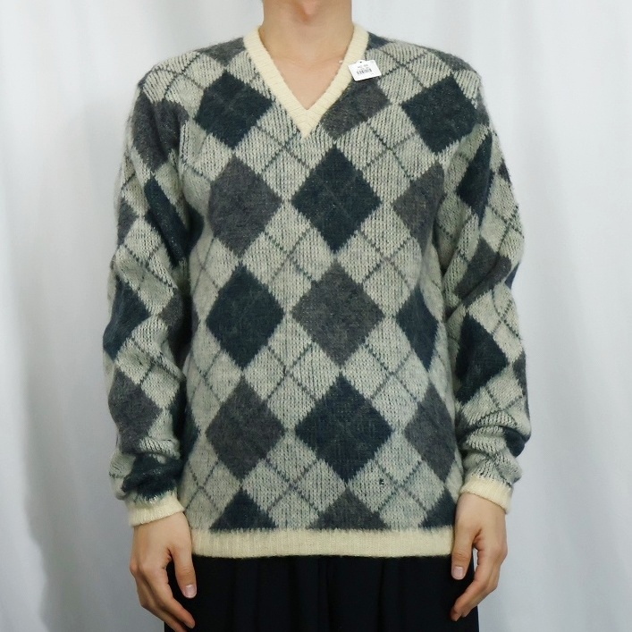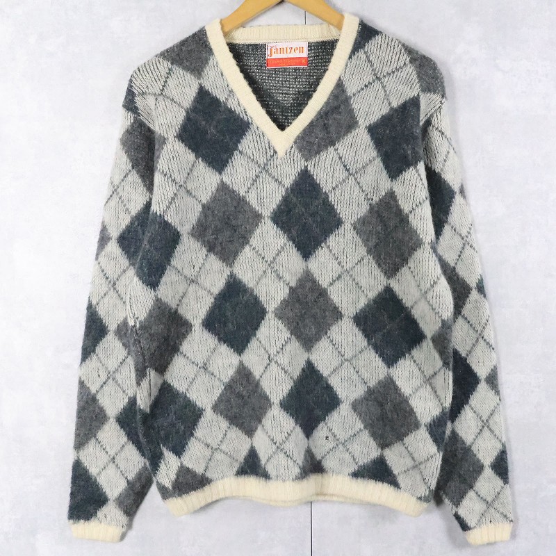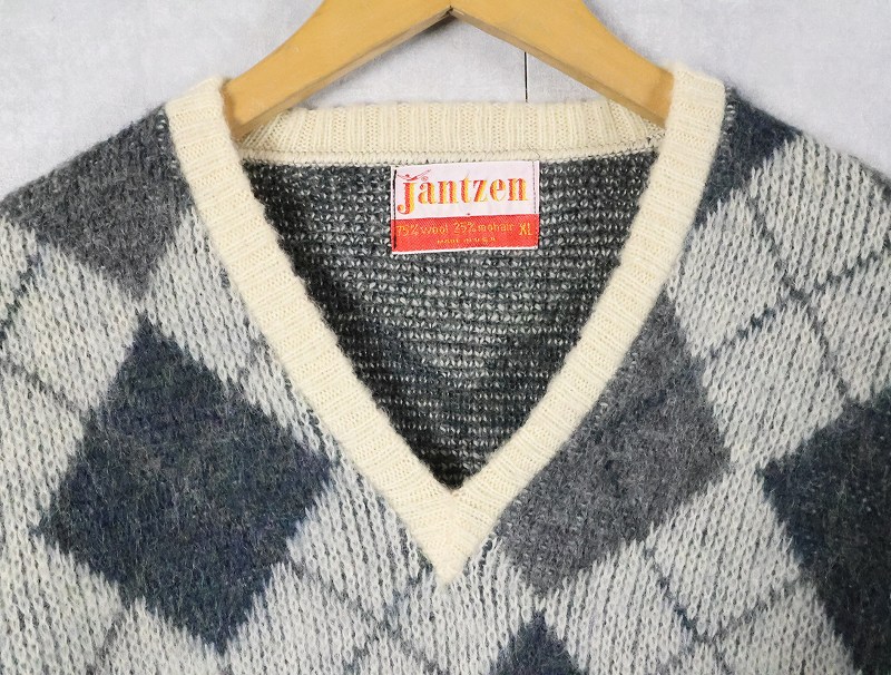 60's Jantzen USA製 アーガイル柄 ウール×モヘア Vネックニットセーター XL [165582]