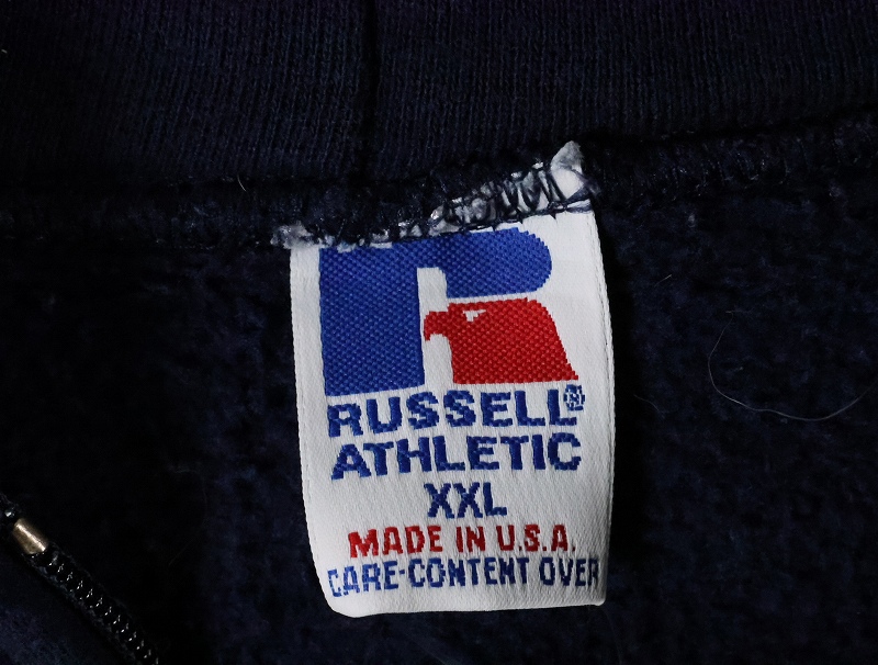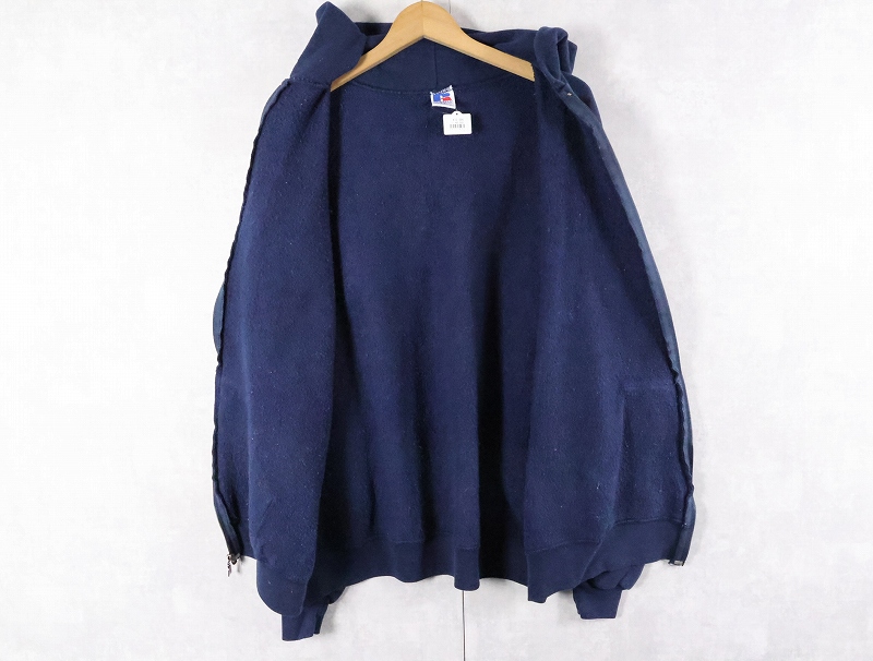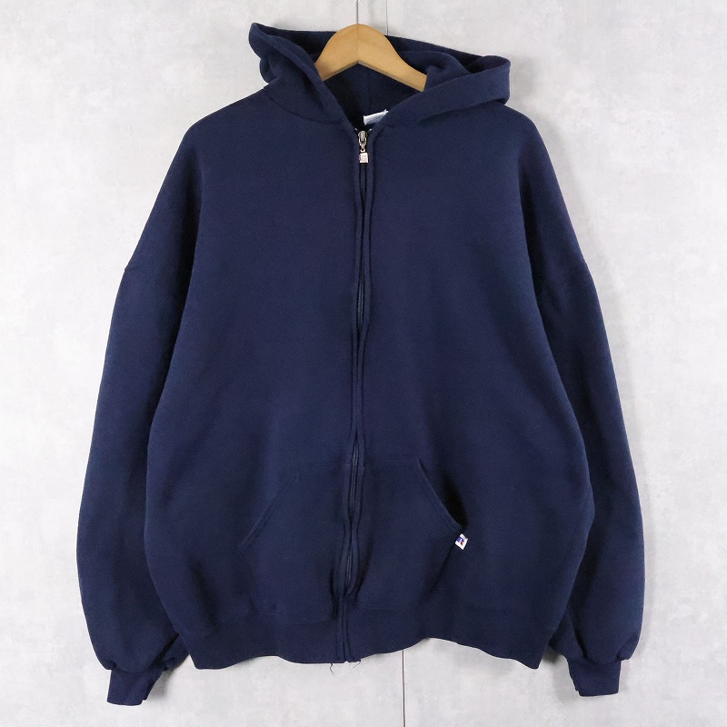90's RUSSELL ATHLETIC USA製 無地スウェットジップパーカー NAVY XXL [165625]